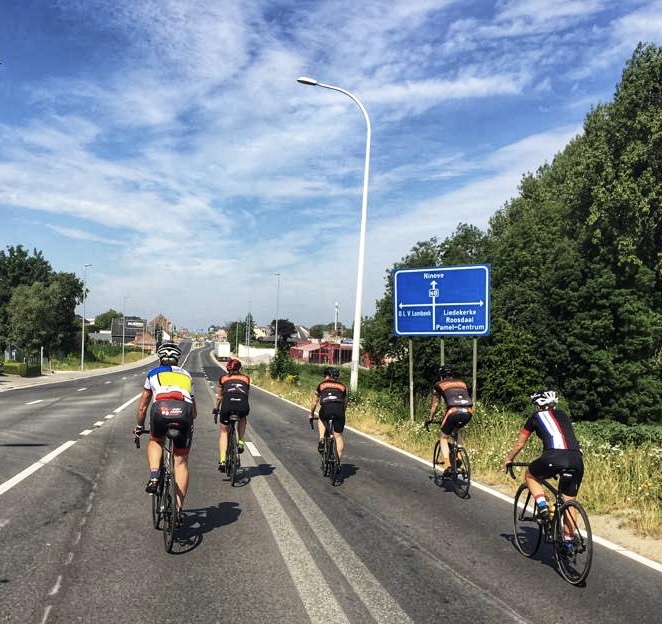Vroeg op, ontbijten en over het Tour parcours naar Ninove. Rijdend door de nét wakkere stad over lege de weg maar tour sfeer is al te proeven. Hier en daar worden we van het parcours gehaald en dan verderop er weer op.