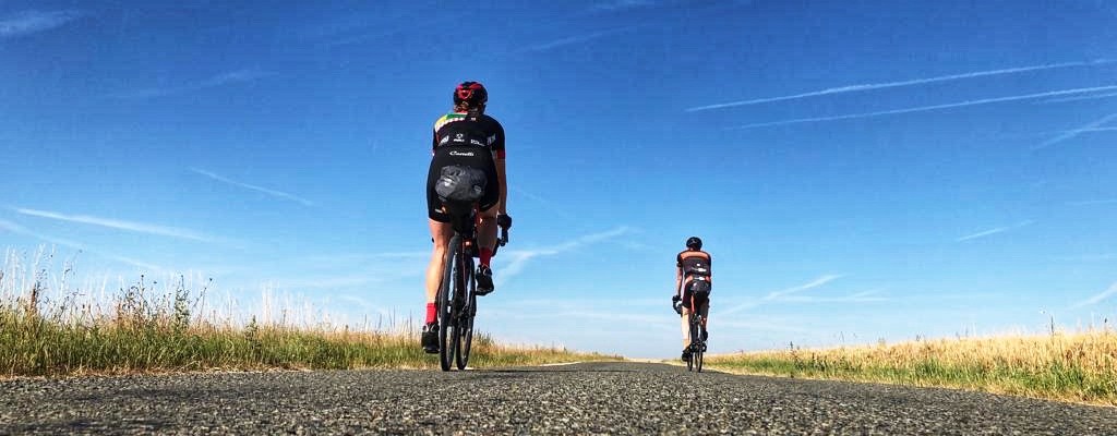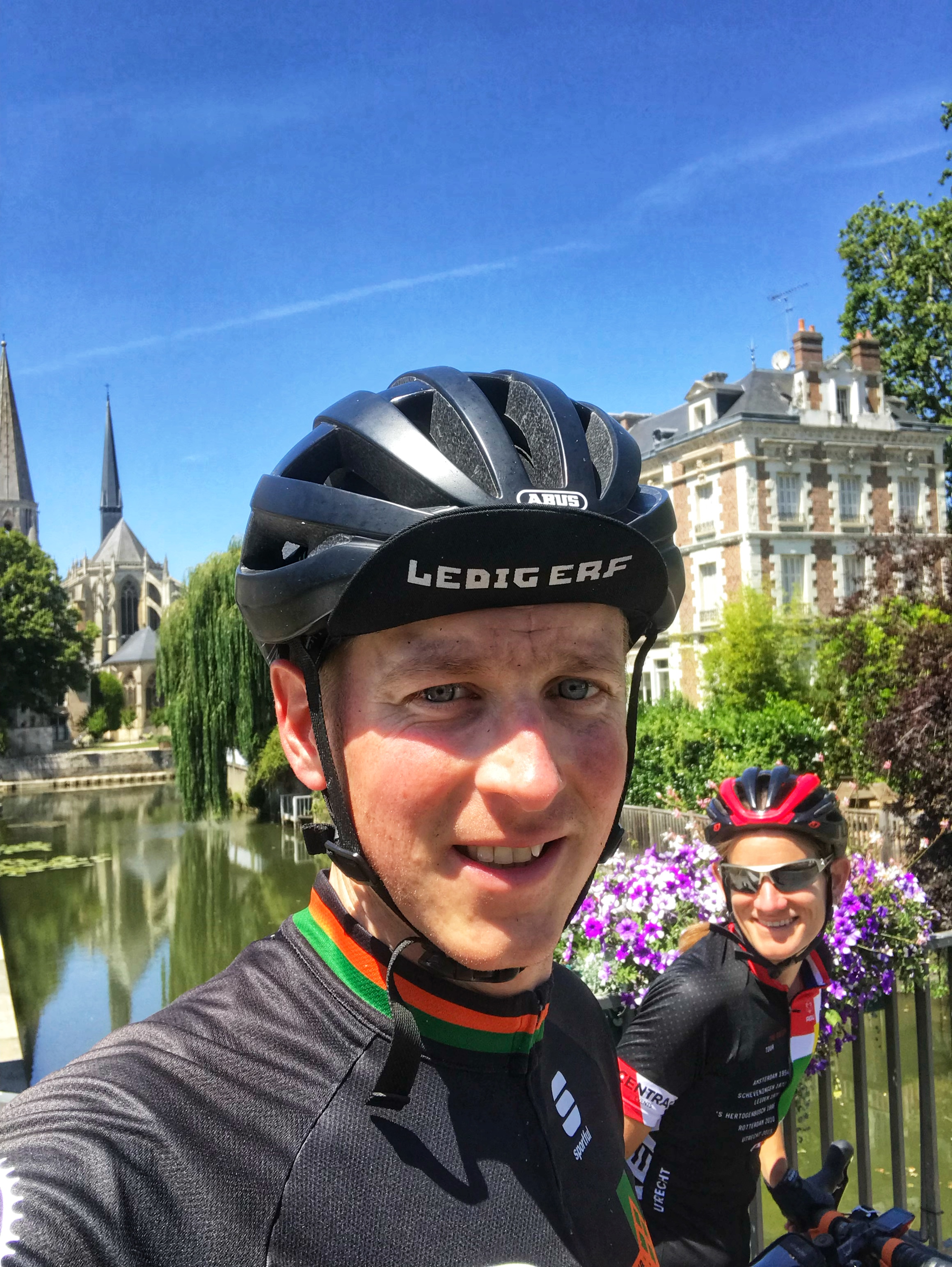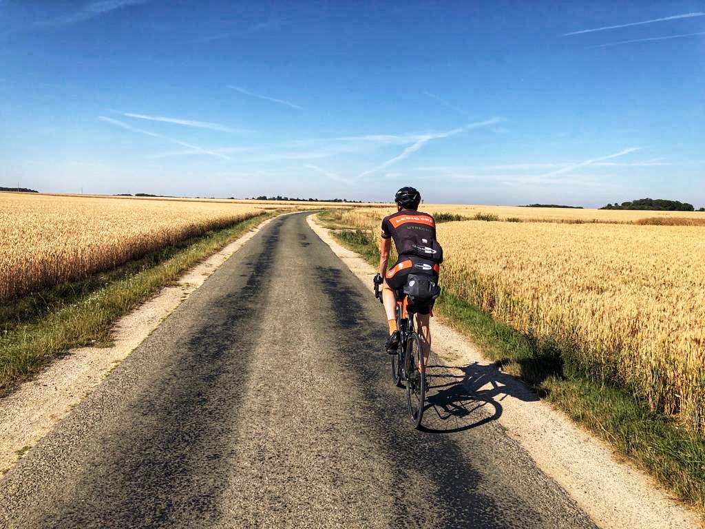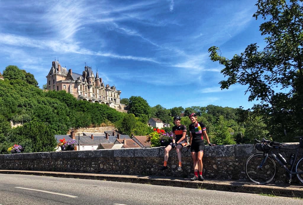 Opeens dalen we af, we blijken op een plateau te zitten en komen opeens bij een rivier, le Loir, waar het niet geel maar groen is. Hier zien we ook het eerste kasteel van onze route. Mooie plek voor een eerste pauze: Cloyes-Sur-le-Loir. Nadat we het dal van Le Loir uit gaan verandert het landschap weer. Graanvelden worden meer en meer afgewisseld met bossen. Leuk om in een gebied met dezelfde vegetatie zo veel subtiele landschapswisselingen te zien.