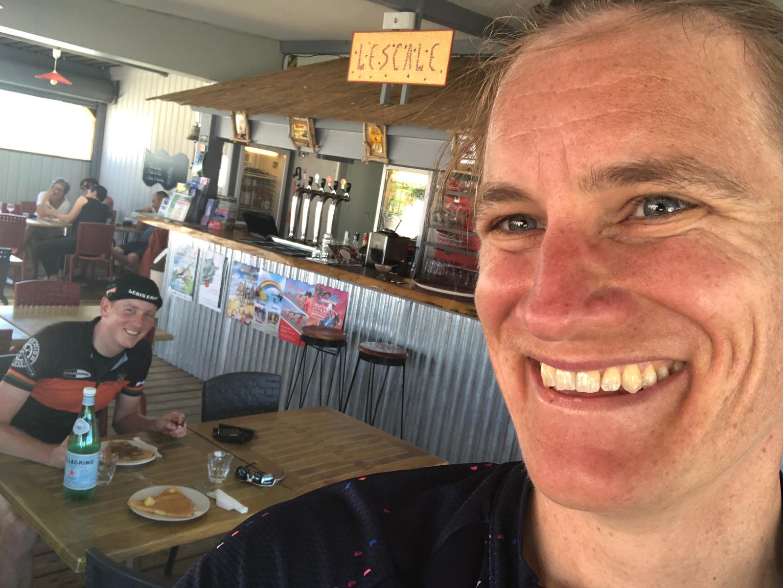 We komen ruim een uur voor we in onze air bnb terecht komen aan in Le Veron Sur Le Mer maar dat is perfect want nu hebben we tijd om Tour de France te kijken. Het is even een zoektocht naar een bar maar een vriendelijke bareigenaar wijst ons naar L’Escale de la Plage, een strandtent waar ze alles hebben wat we willen: Tour De France, crêpes, bier en uitzicht op La Gironde. Hierna gaan we naar onze air bnb die ons hartelijk welkom heet, koud bier staat klaar want we zullen wel dorst hebben na het fietsen. Samen met de in de supermarkt gekochte stokbrood en kazen kunnen we heerlijk in hun picknicken. Perfect einde van de dag.
