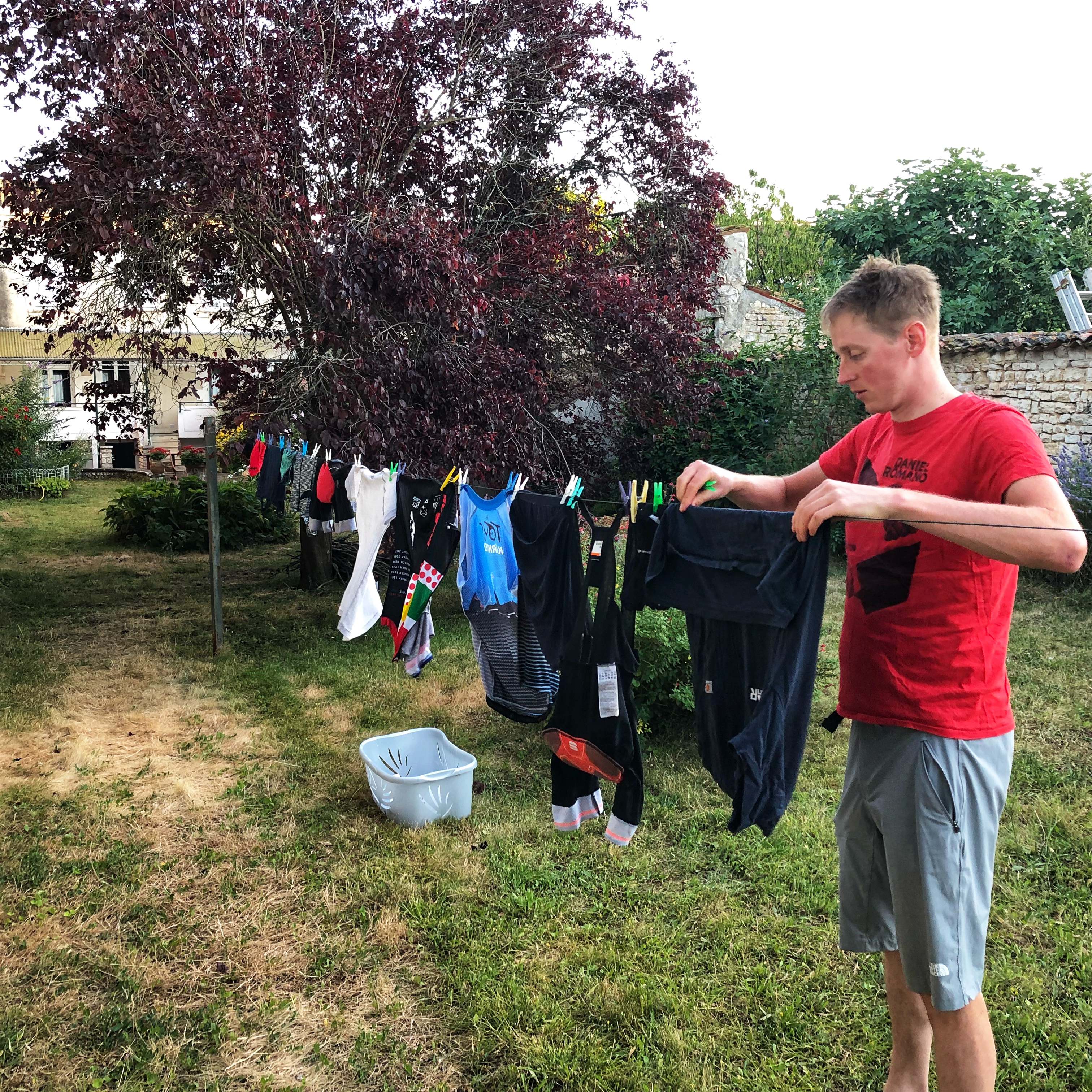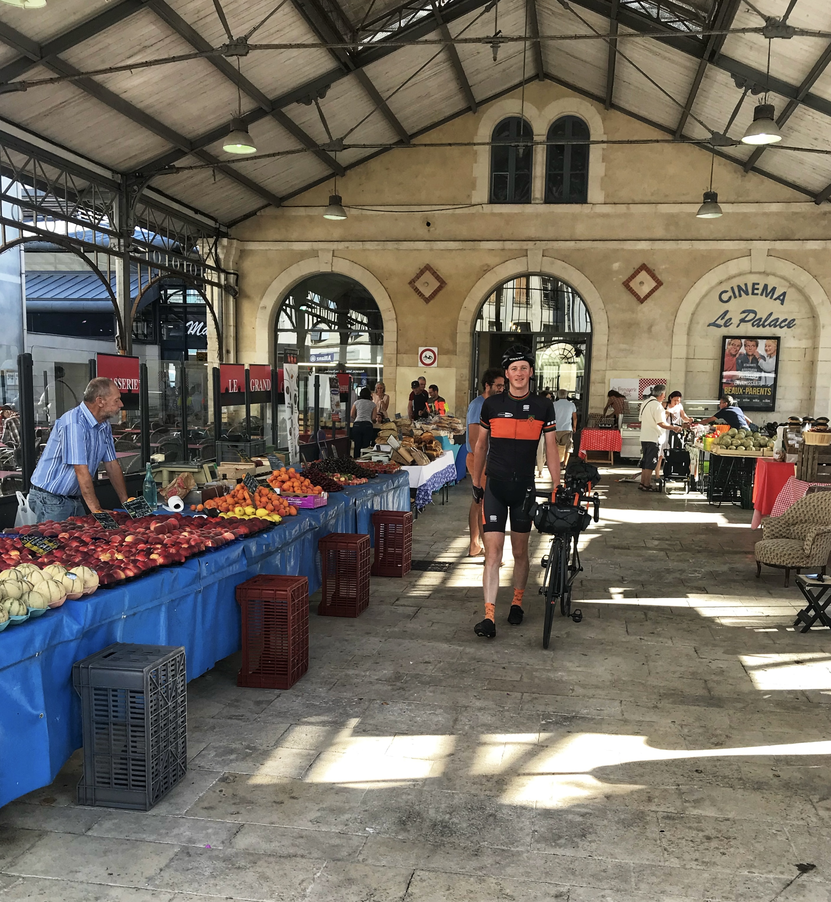 Na een nachtje in een heel fijne air bnb, waar we uitgebreid onze kleren hebben gewassen, kunnen we er weer tegenaan. Vroeg wakker ondanks de biertjes in een gezellige kroeg gisteren. Vandaag een relatief kort ritje want er zit een boottocht in de route. Yann onze host heeft vakantie maar is toch opgestaan om ons gedag te zeggen. We halen de was van de lijn en gaan ontbijten bij een bakker. Markt dag vandaag leuk om zo Sugères te zien ontwaken.