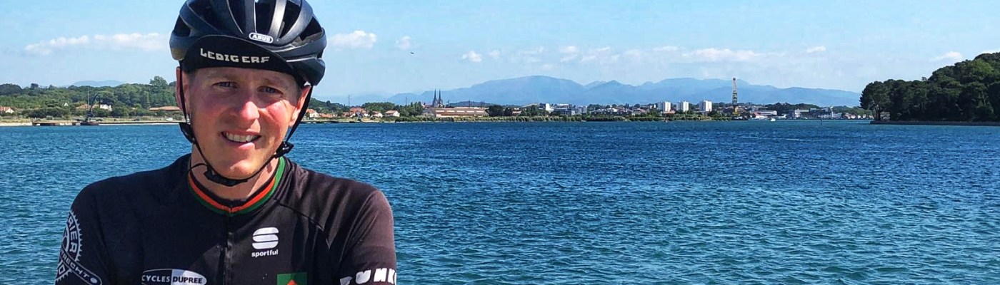 Het laatste stukje gaat langs strandplaatsen, leuk om de zee te zien vooral als dit op een gegeven moment de combinatie van Atlantische Oceaan met Pyreneeën op de achtergrond wordt. Langs een kanaaltje wat een kanaal wordt rijden we Bayonne in. Ook hier weer Pyreneeën op de achtergrond. In het stadje worden we door Reynaldo welkom geheten. Een fijne plek midden in de stad. Restaurant uitzoeken maar.