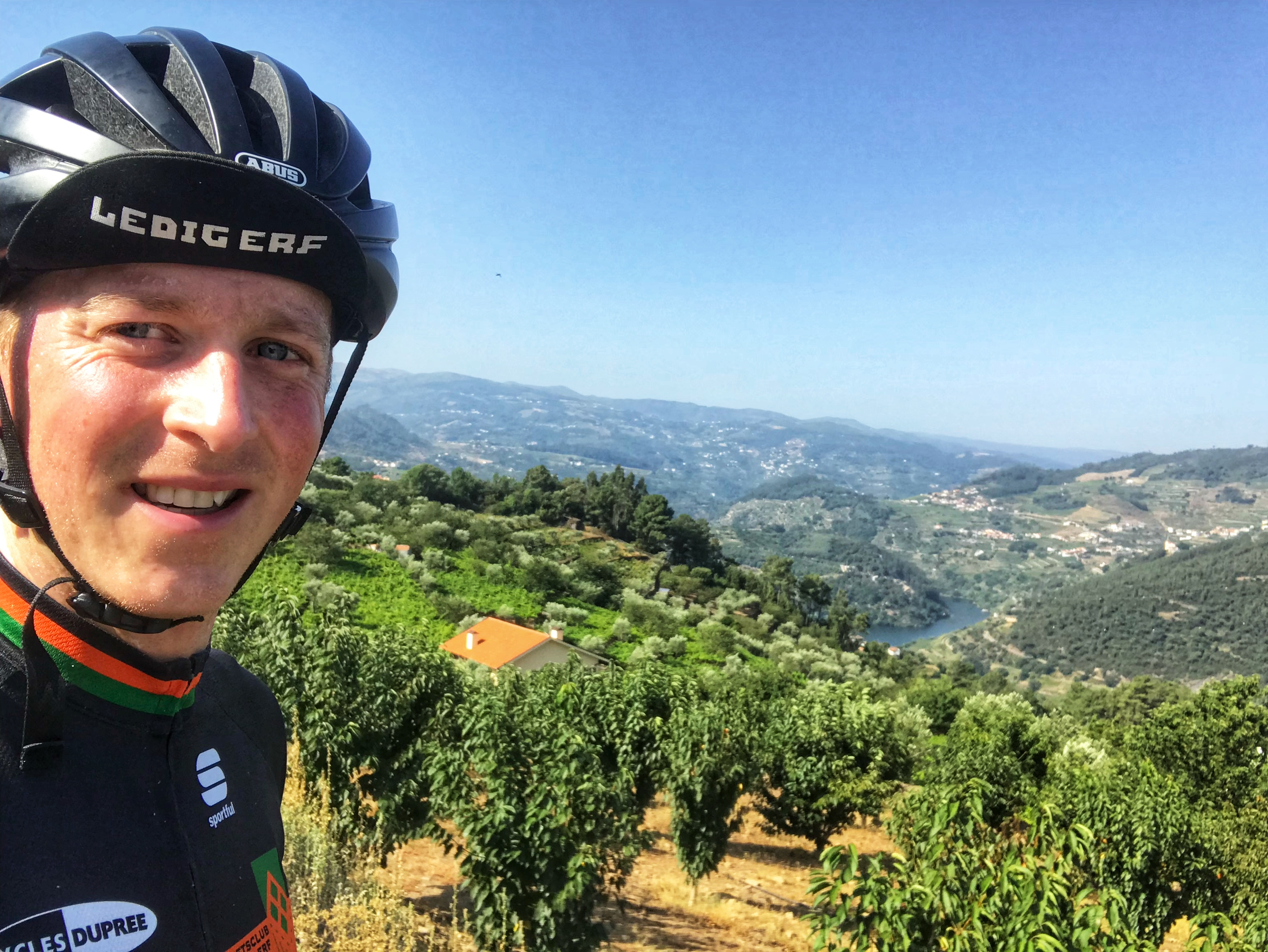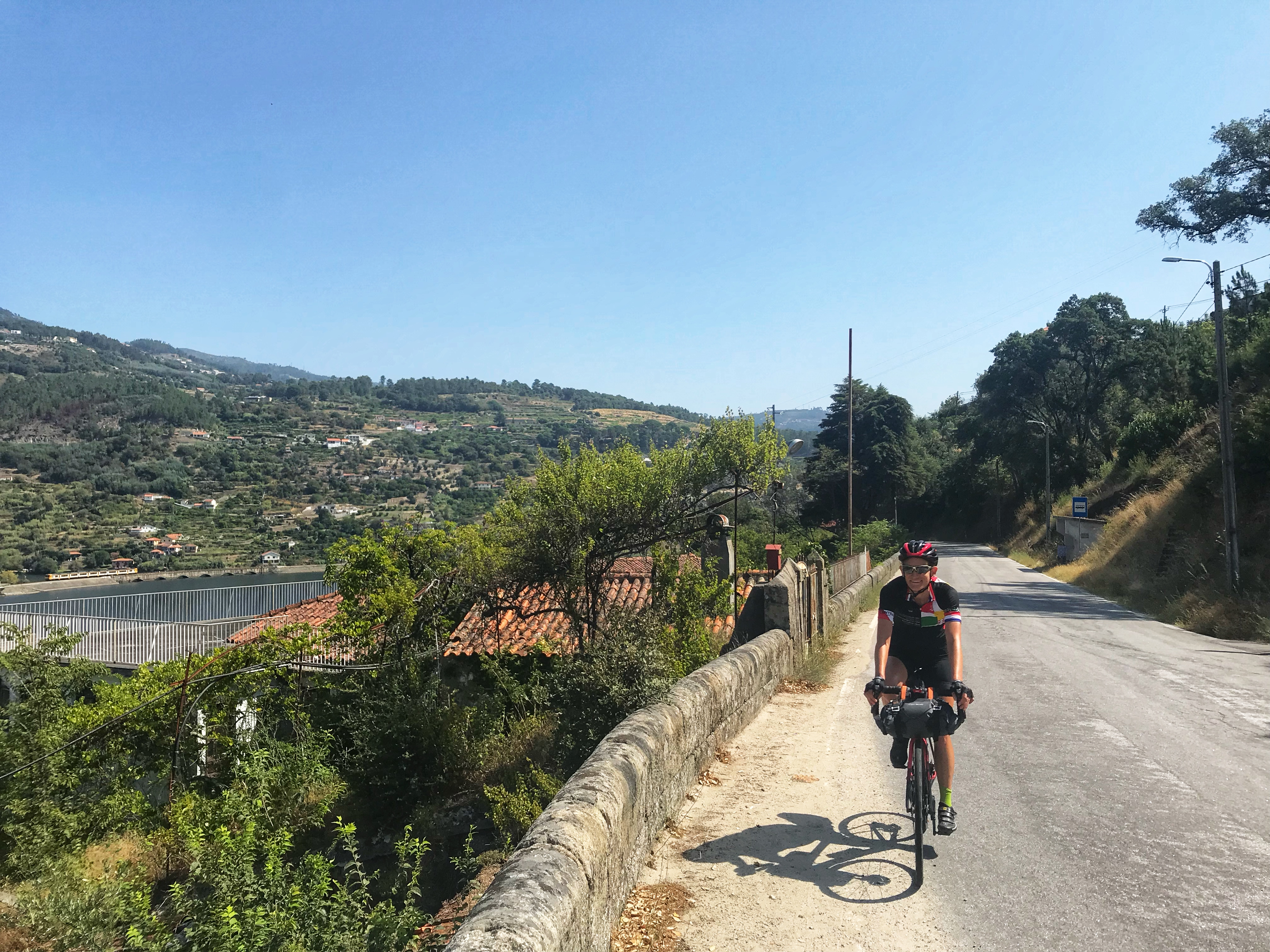 We konden er al tegenaan en nu al helemaal. Het eerste stuk gaat langs de Douro, klim tot maar 350 meter met aan de rechterkant de hele tijd uitzicht op de rivier. Wijngaarden, Portugese dorpjes en veel groen. Aan de overkant van de Douro bergen met hetzelfde wat dus wederom fantastische uitzichten oplevert. We fietsen door tot Porto Antigo waar we aan de Douro lunchen.