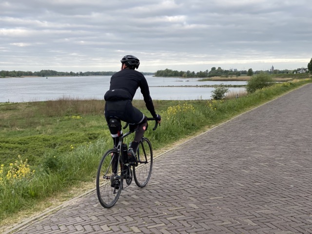 Net onder de 470km, dat betekent al het daglicht goed gebruiken en starten en mogelijk eindigen met lampjes. Vertrek is dan ook bij het krieken van de dag. Het eerste stuk gaat over bekend terrein maar het is leuk om die zo stil te zien, er werkelijk niemand op straat. Vooral fijn om de Linge eens zo rustig te zien. Al snel komen we bij Gorinchem en daarna ken ik het steeds minder. Aanvankelijk wilde ik de route aan zuid kant van de Waal leggen maar omdat het pontje naar Kop Van Het Land maar weinig gaat toch maar even onconventioneel door Sliedrecht. Daarna belandden we snel in de Biesbosch, blijft mooi en nog steeds is het heel stil waardoor we veel vogels horen fluiten. Rustig is het eigenlijk de hele weg behalve het stuk Spijkenisse – Katwijk, maar druk is dat ook niet te noemen. Francien fietst nog met me mee door de Hoekse Waard en onze wegen scheiden nadat we het Haringvliet zijn over gestoken.