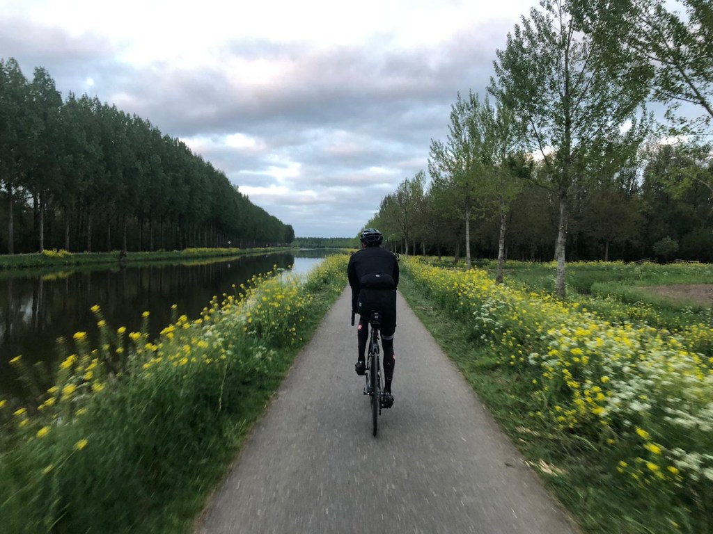 Vanaf Goeree-Overflakkee ben ik alleen. Hier ken ik het ook niet echt meer. Mooie dijken langs de Grevelingen en zie hier zelfs tulpenvelden. Verrassend stukje Nederland. Bij de Brouwersdam kom ik aan zee met ook uitzicht op de tweede Maasvlakte. Na een kort maar leuk stuk over gravelpaden in de duinen kom ik bij de Haringvlietdam waar ik oversteek richting Rockanje. Ook een verrassend stukje Nederland op de momenten dat je de havens niet op de achtergrond ziet, wat het volgende stuk is waar ik me in zal begeven. Mooi is het niet wél indrukwekkend en groot, denk dat ik doordat ik op en neer ga wel 40 à 50 km in dit gebied zit tot ik bij Hoek van Holland kom. Vanaf daar rij ik langs de kust tot Noordwijk met een koude tegenwind. Geen pretje met al 300+ km in de benen. Gelukkig is het mooi in de duinen maar het duurt lang voor ik eruit ben en via de tulpenvelden rondom Lisse van de meewind langs de ringvaart kan genieten.