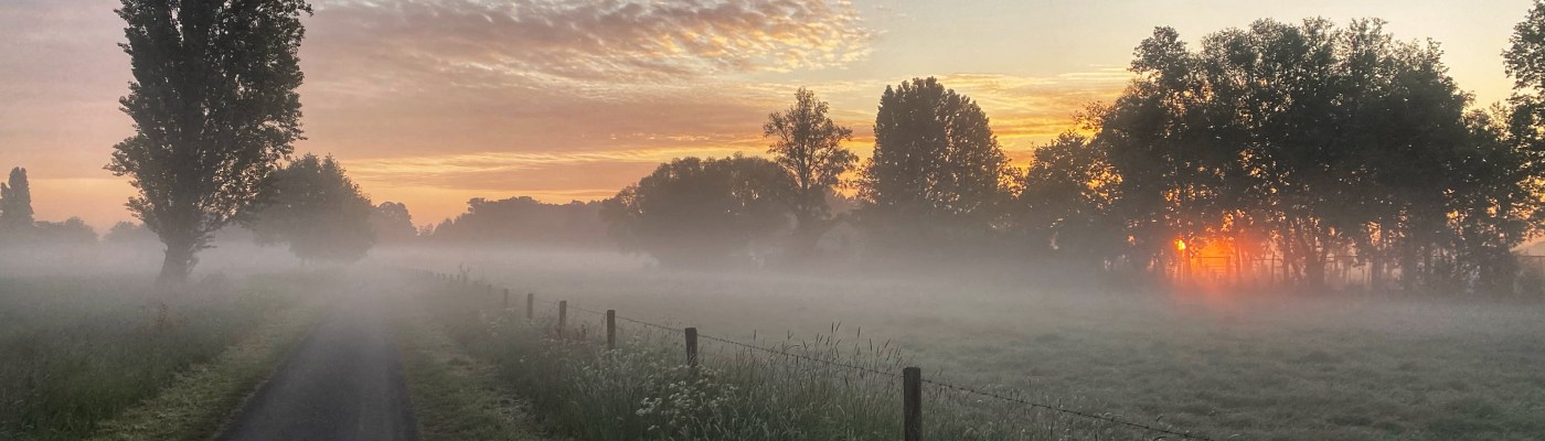 Door een leeg Utrecht ben ik snel de stad uit en ik zie de zon op komen. Prachtig door de weilanden met met een hoop dauw. Het stuk tot Hollandsche Rading en door we weilanden naar Tienhoven heb ik er nog nooit zo mooi bij zien liggen.
