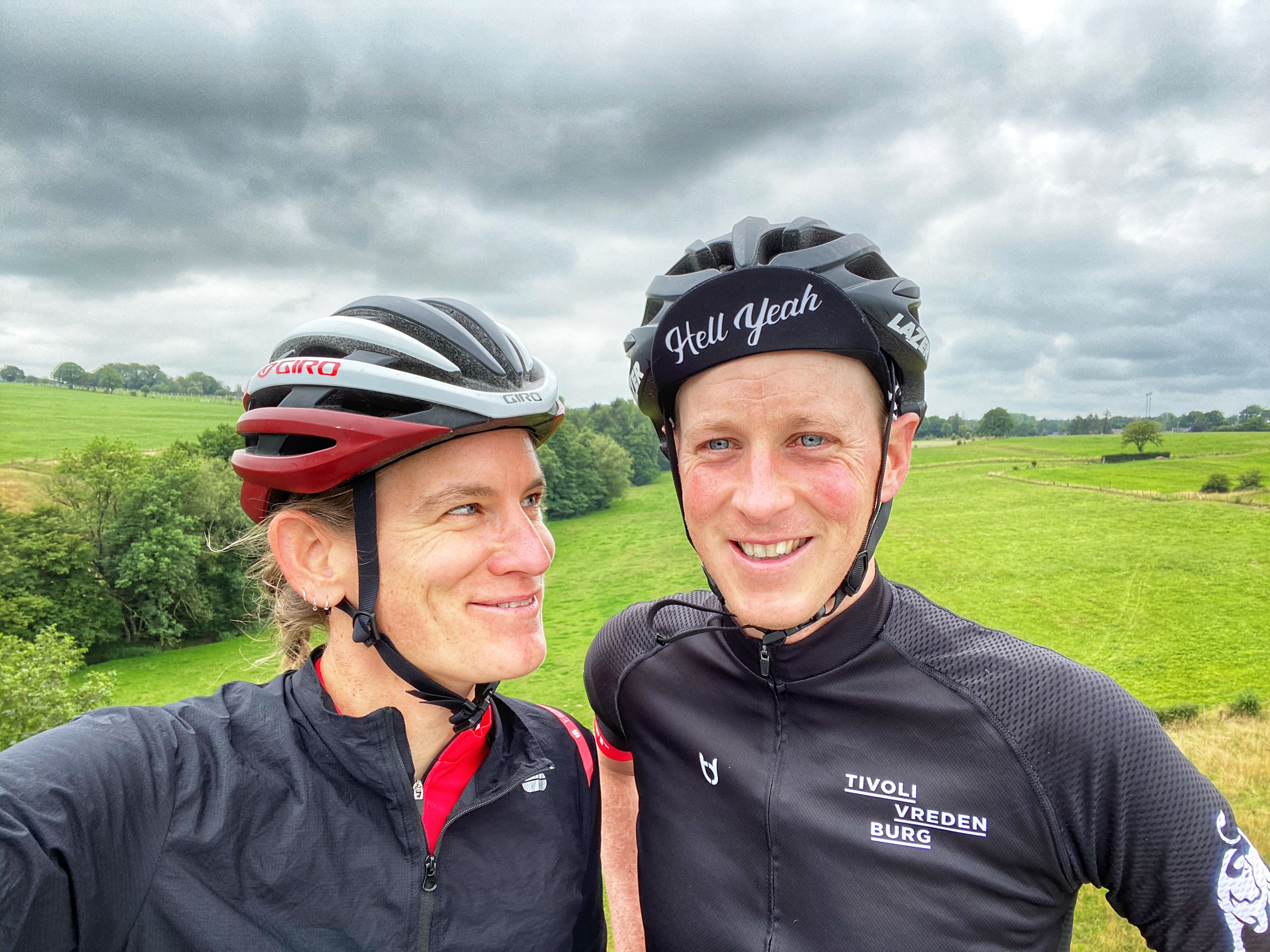 Na Aachen rijden we de vennbahn op en kunnen we weer naast elkaar fietsen. Het is een grijze maandag dus weinig boomers die zwalkend over de weg gaan. Ook nog eens een stuk vennbahn wat ik nog niet kende dus dubbele pret.
