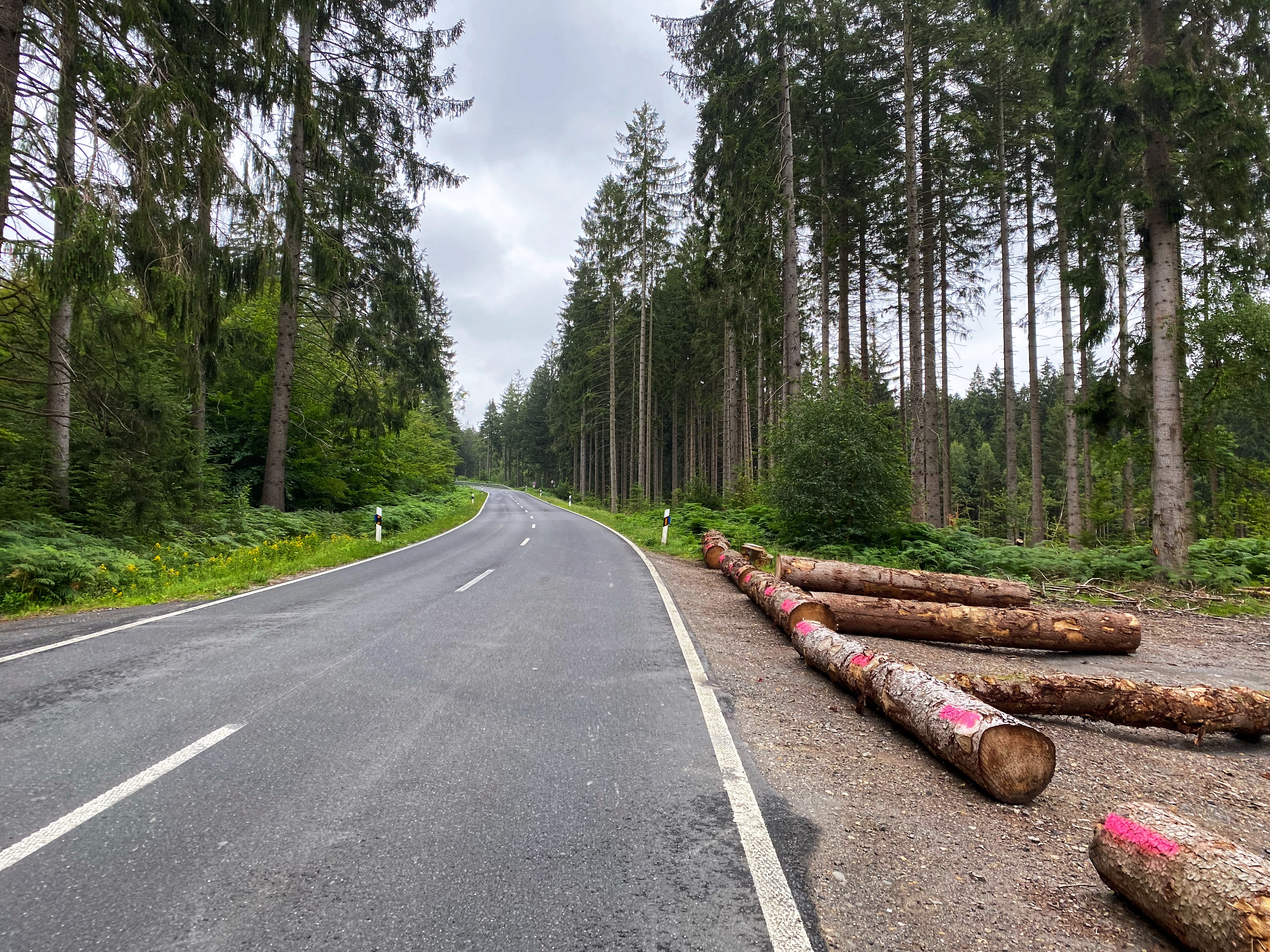 In de buurt van Venwegen laten we de Vennbahn links liggen en klimmen we naar Simmerath. Een prachtige lange klim door de bossen. Af en toe rijden er auto’s maar als die geweken zijn is het stil en ruik je het bos. Door de miezer wordt dit ook nog versterkt. Fantastisch!