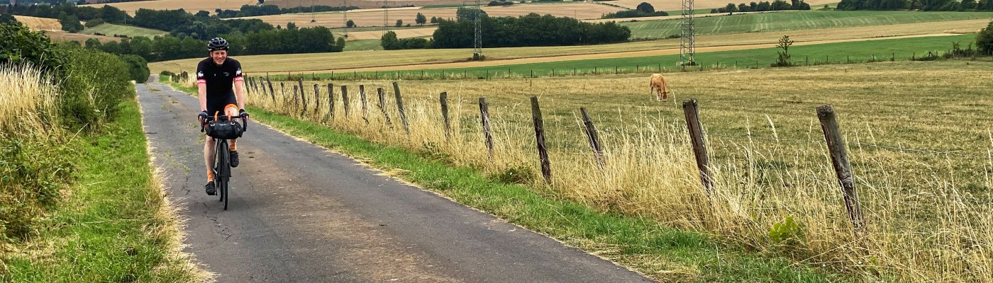 Het eerste stukje rondom Aachen is druk met veel bebouwing maar her en der zijn er wat uitzichten. Het is een soort extensie van Zuid-Limburg maar met Duitse bebouwing. Wat ook betekent moeilijke fietspaden en je kenbaar maken aan Duitslands heilige koe, de auto. Het stuk om Aachen heen levert daarentegen wel kostbare veloviewer vakjes op dus klagen hoor je me niet.