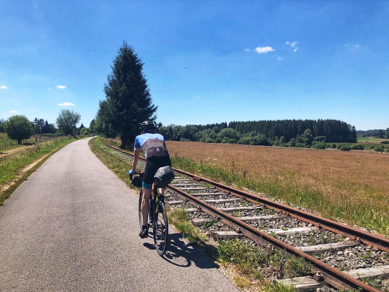 Het eerste stuk van de Vennbahn kende ik al en rond Monschau zijn er veel dagjesmensen en is het relatief druk. Dat verandert na Weywertz. Het is mooi maar tot Sankt Vith is het recht toe recht aan en doordat er naast de baan veel bomen zijn missen we de uitzichten.