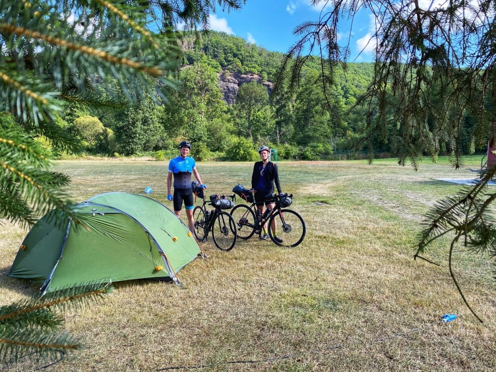 Na een koud nachtje in de tent worden we wakker door de warme zon die opeens te voorschijn is gekomen en de tent binnen een kwartier geheel opwarmt. Opstaan en tijd voor een heus camping ontbijt: oploskoffie en brood met Nutella en La Vache Qui Rit. Op de camping genieten we nog even van het uitzicht op de rotsen maar al snel is het tijd om in te pakken en aan etappe 4 te beginnen.