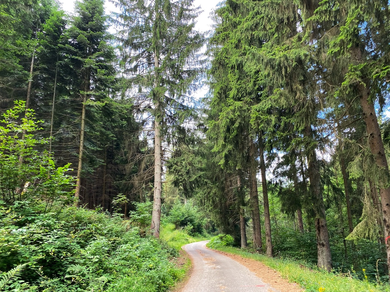 Van Zemmer is het eigenlijk een grote afdaling naar Trier. We duiken meteen het bos in en komen op een prachtig landweggetje. We wanen ons in de middle of nowhere. Francien rijdt voor me uit en spot hertjes, ik geniet van het kabbelend beekje dat naast ons stroomt.