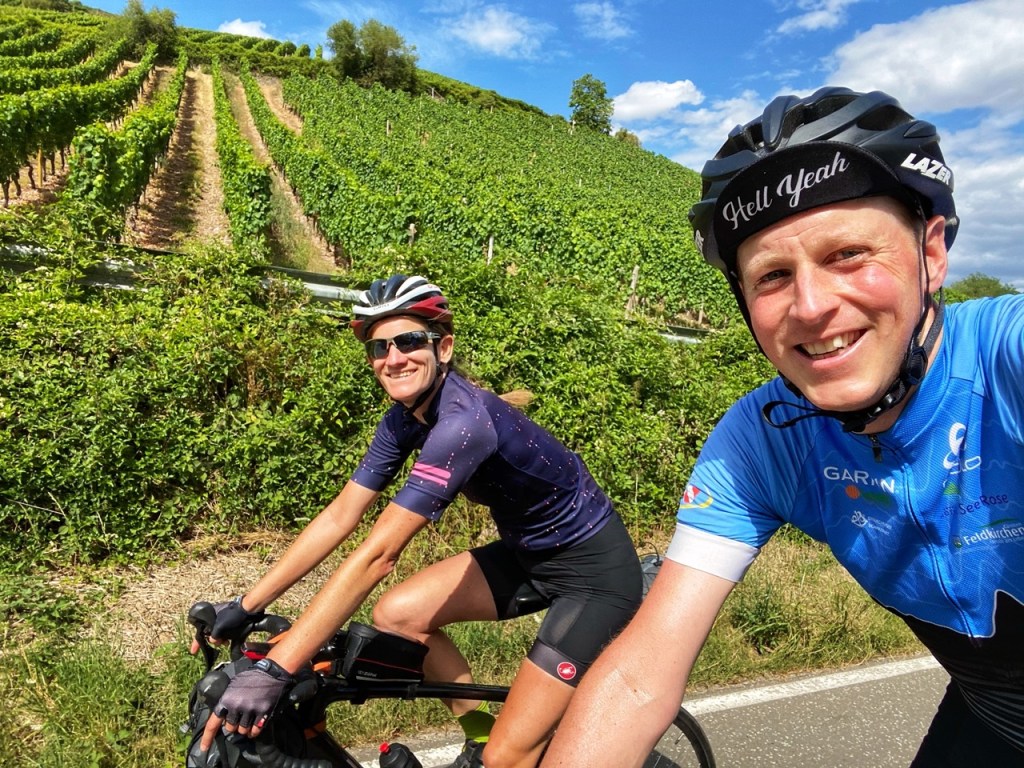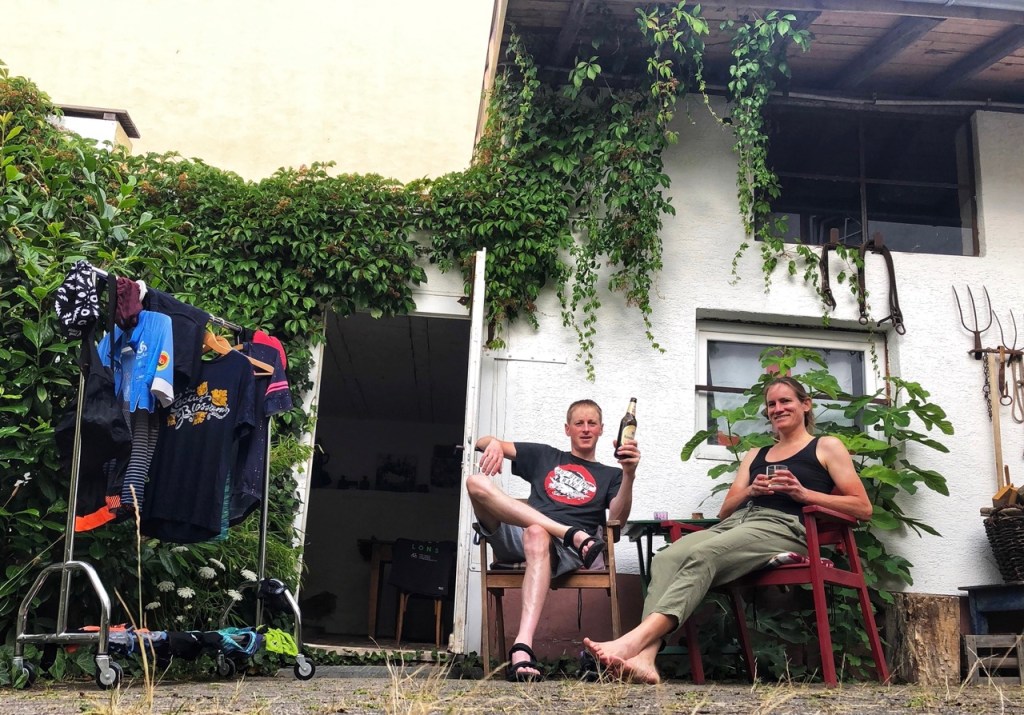 Voor we er zijn gaan we nog een paar kilometer door de vallei, klimmen we naar het dorpje Boos en dan een laatste klimmetje tussen de wijnvelden naar Waldböckenheim, waar we een geweldig onderkomen aantreffen. Tijd om in de zon na te genieten met een glaasje.