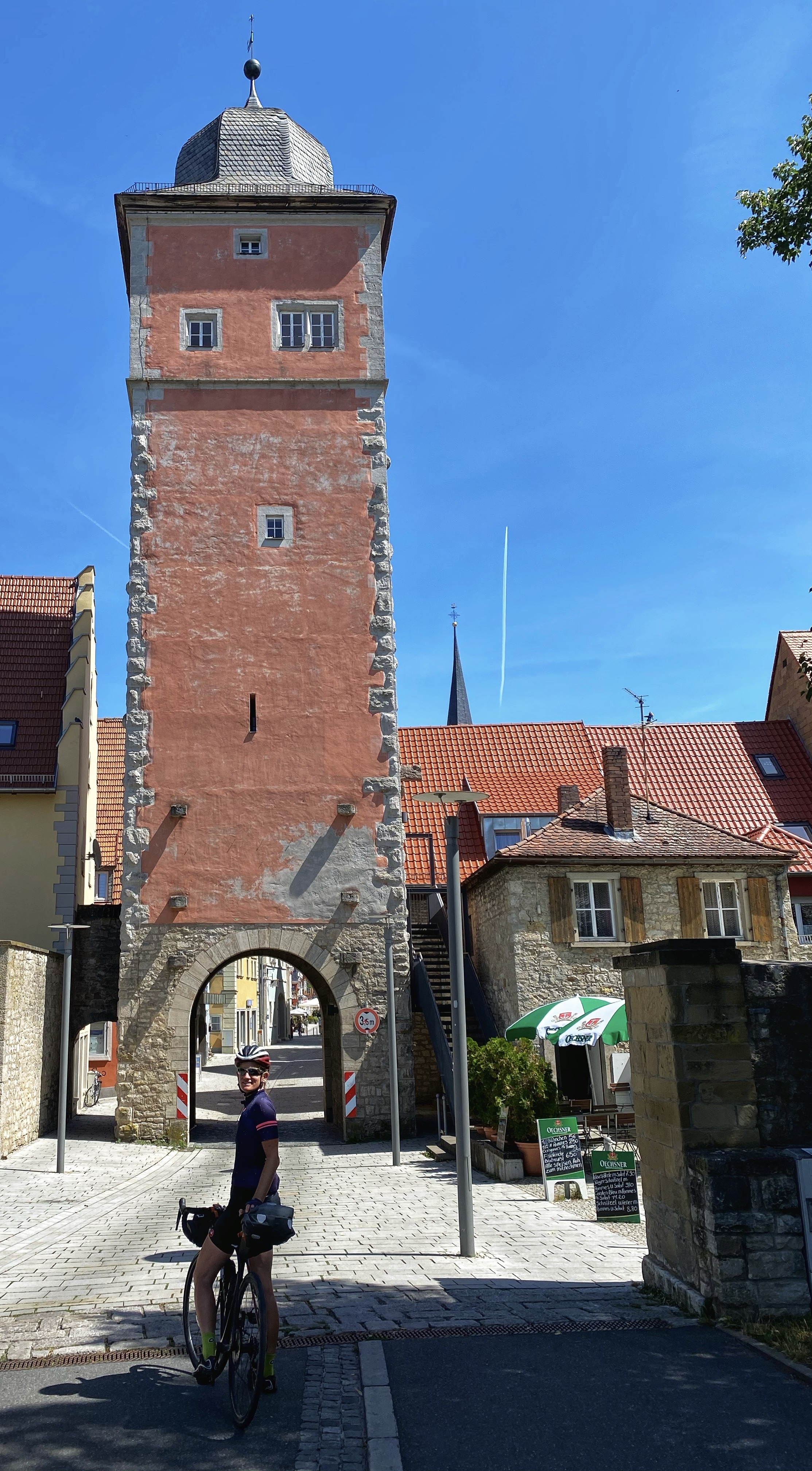 Via een fietspad dat door het bos loopt gaan we het dorp uit. Het ligt mooi afgeschermd en via de pas dalen we af naar Ochenfurt. Dit is een prachtig stadje aan de Main. Die rivier volgen we tot Markbreit, een ander prachtig stadje met peperkoekhuisjes.