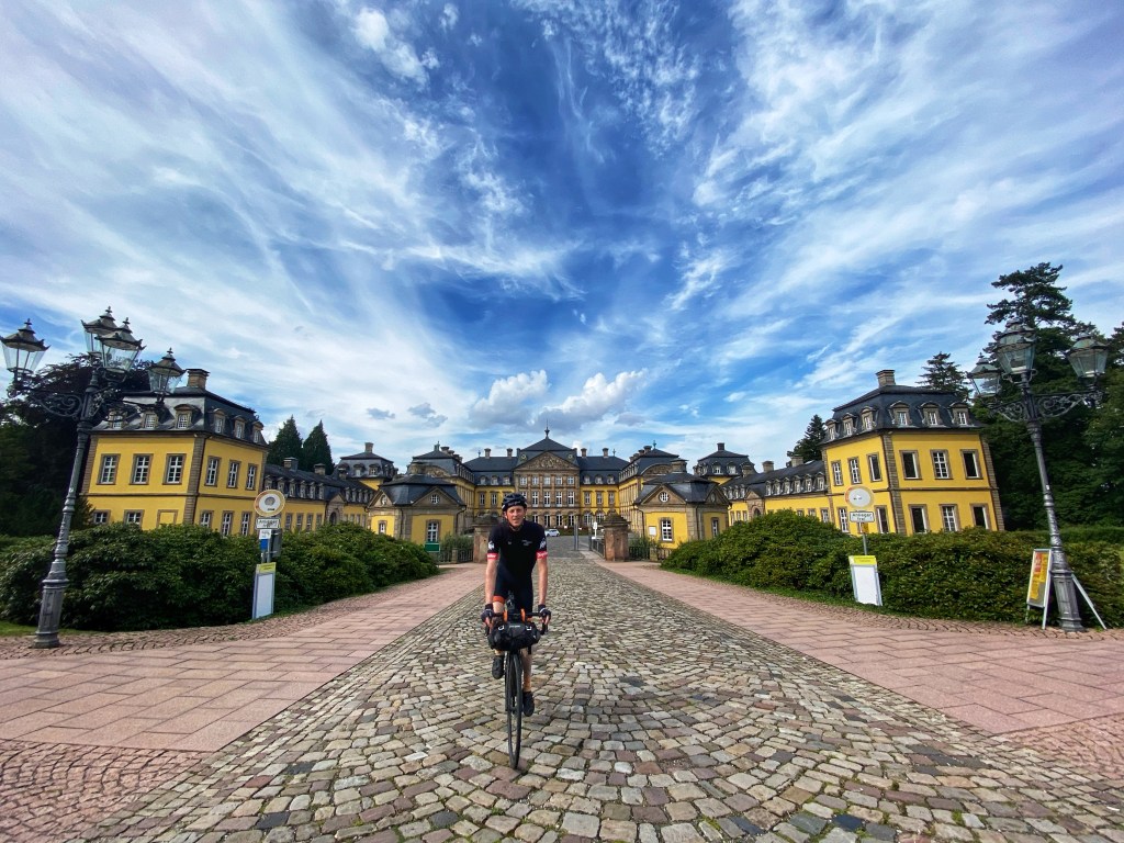 Deze is veelal rustig en mooi, glooiend met soms een paar pittige stukjes van een paar honderd meter. Ik zeg veelal want de route komt ook langs Twiste waar we nog even tussen de badgasten door mogen slalommen. Hierin zijn we inmiddels een paar levels up dus dat vormt geen probleem. De eindbaas van de dag is immers geen badgast maar een steile klim die het dorp in gaat. Ook die spelen we uit en ons luxe appartement is in zicht. Via Residenz-Schloß Arolsen rollen we de kerkplaats op. Inchecken, fiets poetsen, handwas, al die dingen én vooral eten want de tankstation lunch was matig.
