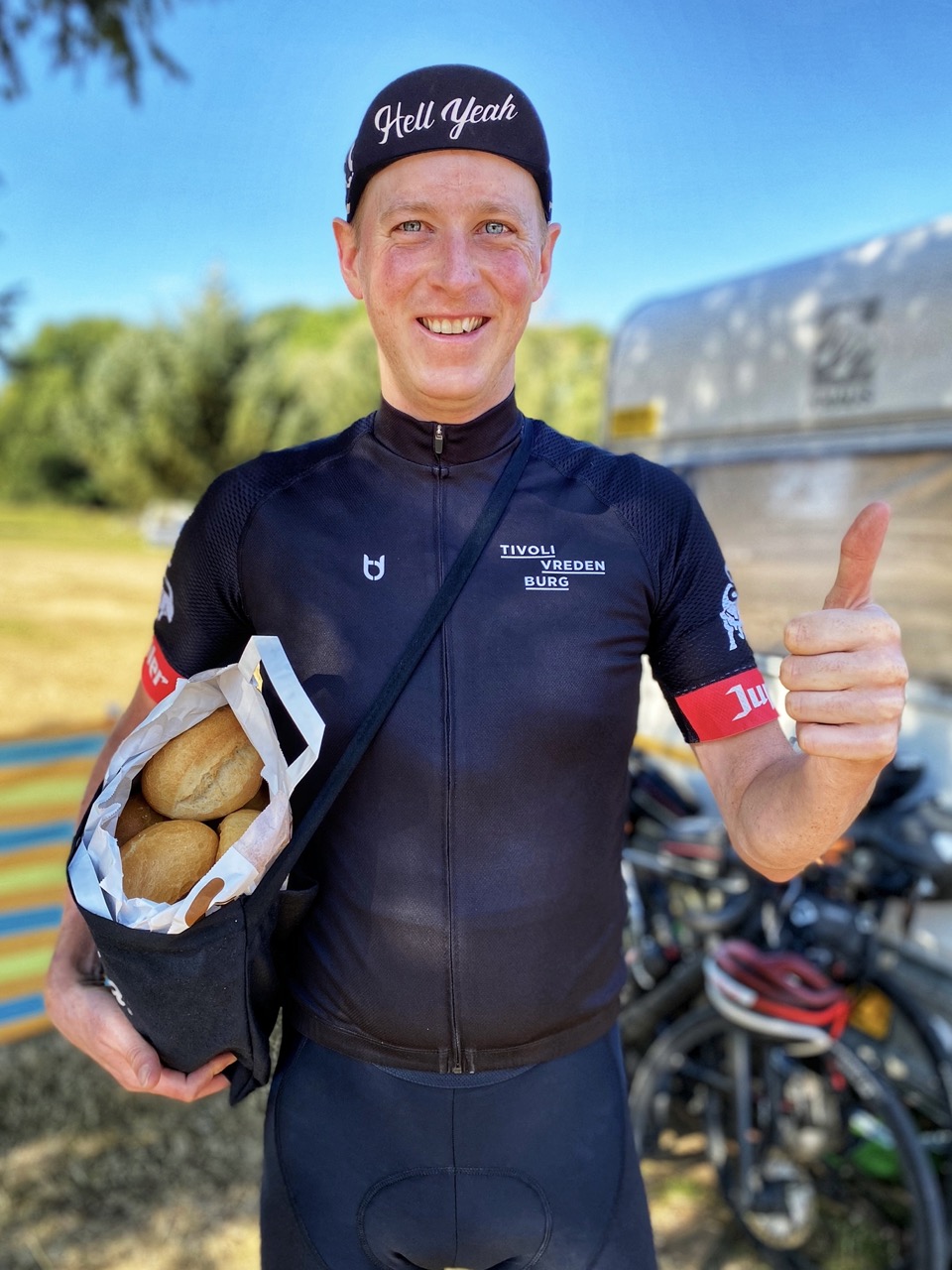 Na het ontbijt tassen inpakken en via de bakker verder. We hebben zelf genoeg gegeten maar doen aan broodjes service voor Gijs, Bea en de kinderen. Zij zitten vier kilometer verder op de camping en we gaan er even op de oploskoffie. Al is er voor een klein stukje Schnecke altijd nog wel een gaatje te vinden.