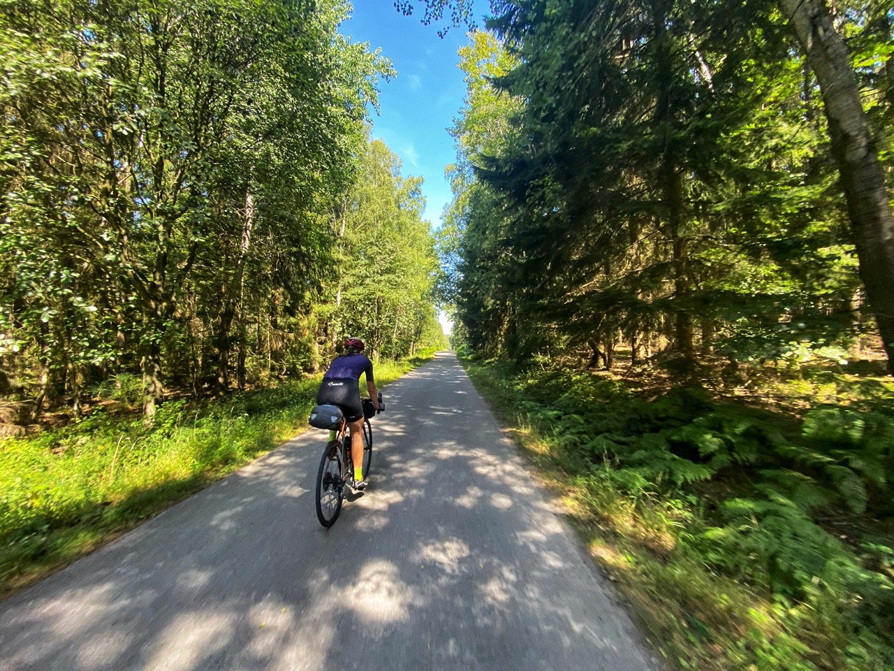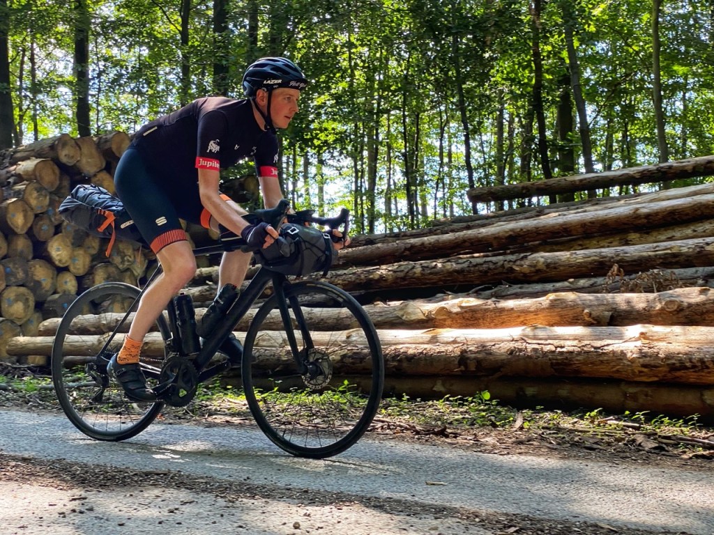 In de Eifel resulteert dat, na de voor mij bekende klim richting Schmidt, in een prachtige afdaling naar Brück en een leuke klim naar Bergstein. Die klim loopt door in een lange langweilige doorgaande weg om vanaf Großhau door een prachtig rustig bospad in Stolberg uit te komen.