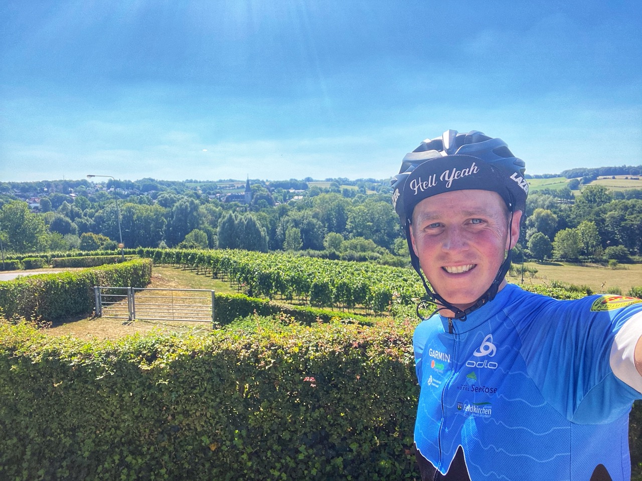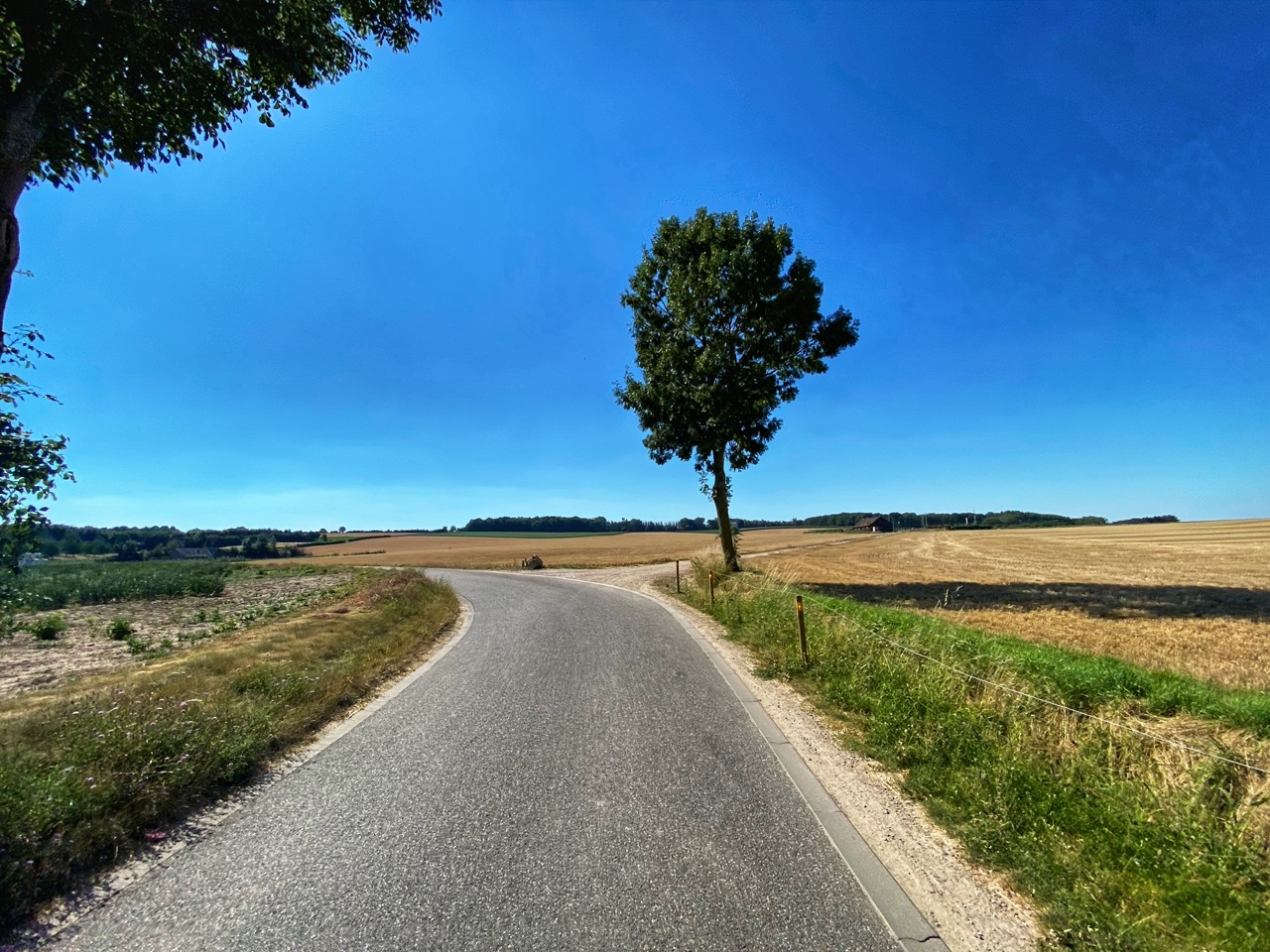 Uiteindelijk via Sint-Geertruid en Noorbeek naar de Belgische grens. Hier begint het heet te worden. Denk over een vlaai stop maar besluit toch door te fietsen.