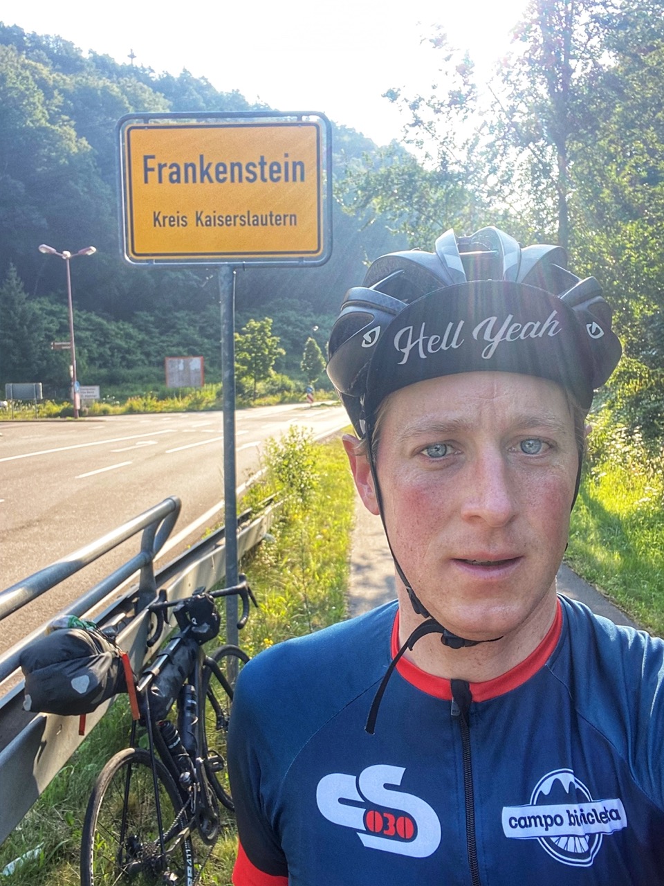 Ondanks dat het hoogte profiel anders doet geloven mag ik met een pittig klimmetje beginnen. Meteen wakker. Ik rij richting en door het Pfälzerwald en heb tot Frankenstein een stukje route die ik vorig jaar met Francien al eens reed. Weinig keuze want door dit bod lopen nu eenmaal weinig wegen.