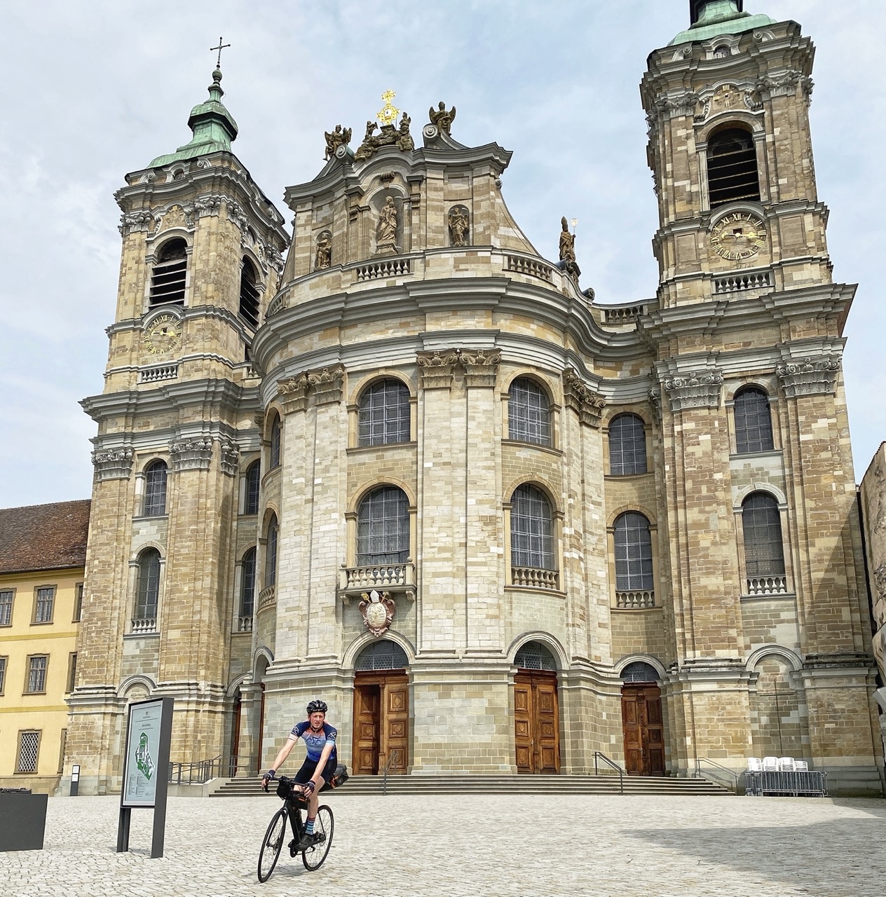 Vanaf hier is het afdalen naar Baienfurt. Als ik beneden kom zie ik een basiliek boven het landschap uitsteken. Ik besluit deze nog even te bezichtigen alvorens ik mijn Air bnb in duik.