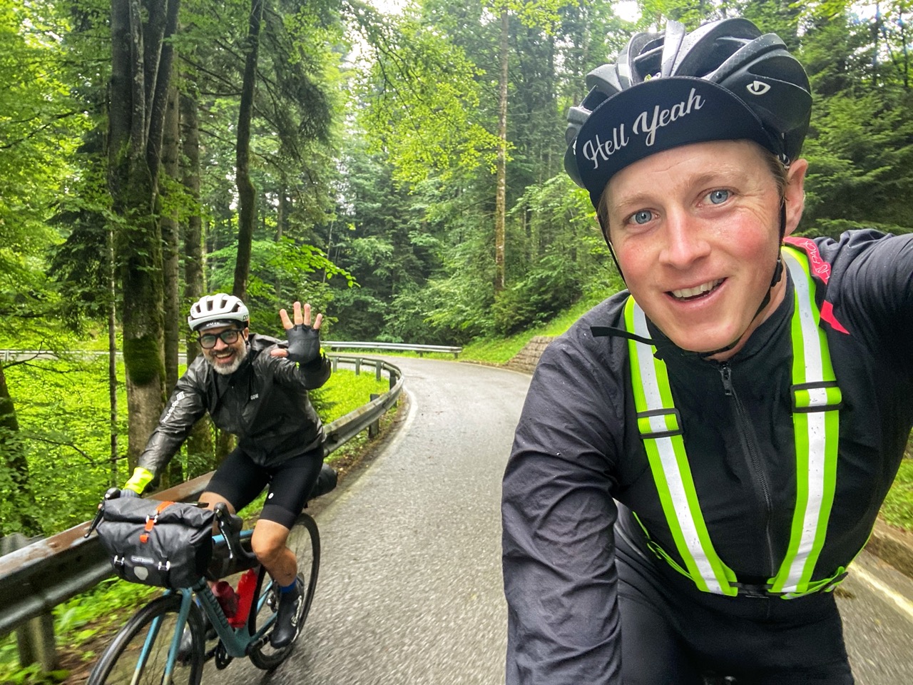 Ik rijd rustig verder naar de top en kom daar een andere bikepacker tegen, die net als wat ik van plan was, een hotpack aan het aantrekken is. We maken een praatje en fietsen een klein stukje samen op. Lourens meen ik dat hij heet maar echt goed verstaan kan ik hem niet in de afdaling.