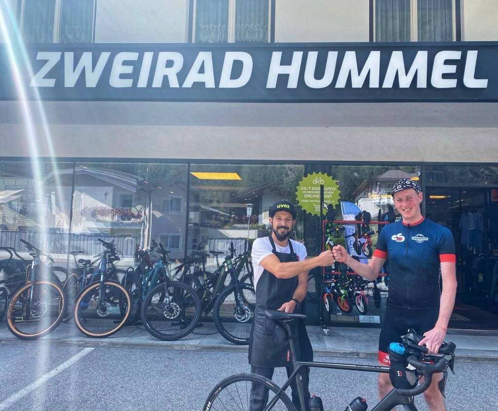 Gelukkig is de fietsenmaker van Zaeorad Hummel zeer vriendelijk en behulpzaam. Hij maakt mijn fiets en we hebben een leuke babbel over renradfahren.