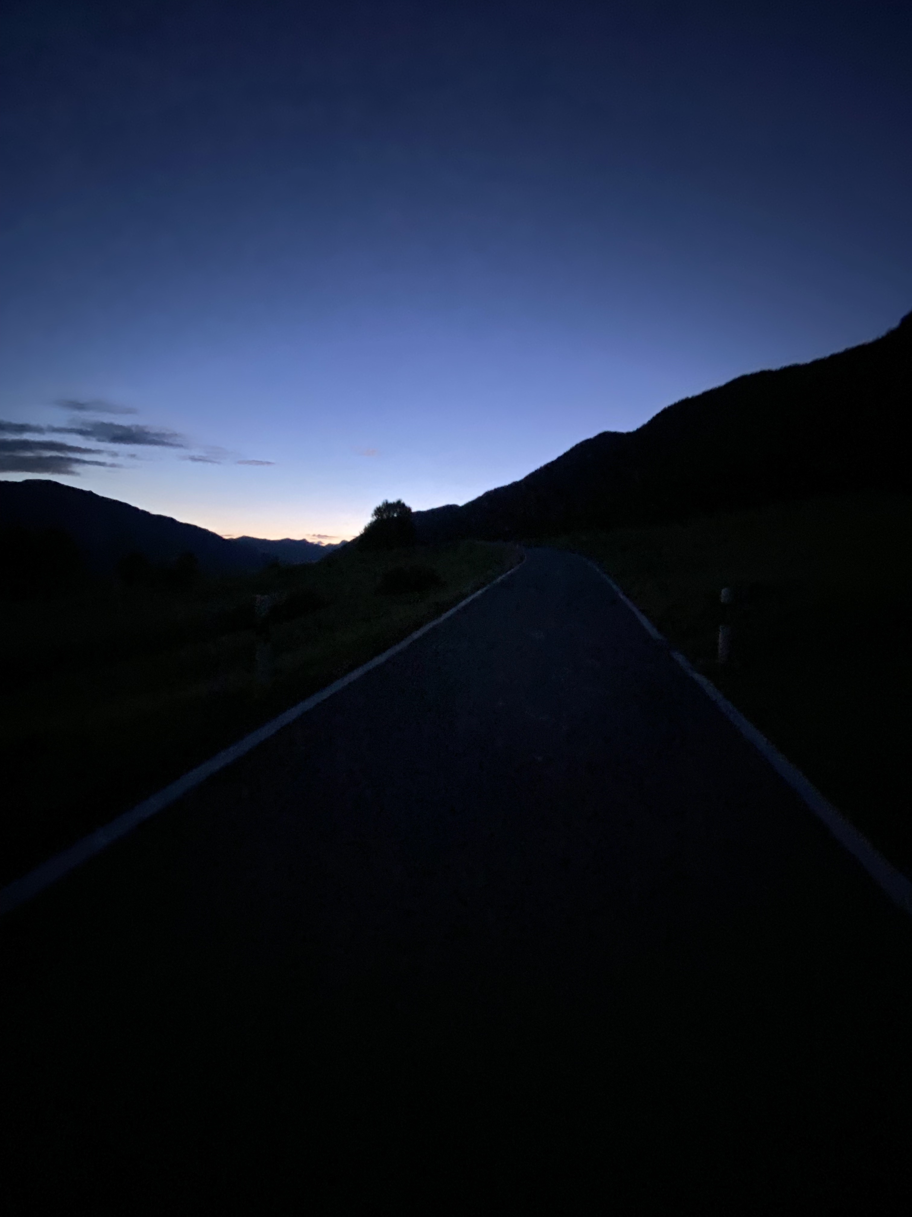 Om niet al te veel te verliezen op de mensen die wel de Stelvio in het donker durven af te dalen besluit ik de wekker om 3 uur te zetten. Ik lig er vroeg in, dus ook weer vroeg op. In het donker omhoog durf ik wel, dus dat doe ik.