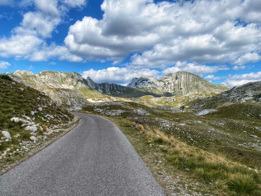 De route volgt de panoramaweg naar Durmitor. Misschien wel het mooiste stuk van de gehele TCR. Allereerst rijd ik door de rotsen met uitzicht op het blauwe stuwmeer waar CP3 aan ligt, eenmaal op hoogte volgt een soort van grassig steppe landschap met vergezichten, en dan volgt Durmitor, wat een fantastische berg is. Ik kan iedereen aanraden hier naartoe te gaan. Op het eind van het parcours is het afdalen naar Žabljak, een ski-oord met supermarkt om inkopen te doen voor de nacht.