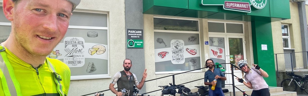 Met letterlijk pijn en moeite kom ik beneden. Ik fiets naar het eerste dorpje en hoop op taart, ijs, broodjes alles. Gelukkig komt dit dorpje snel en hier zitten het Franse duo en Meaghan bij een supermarkt bij te komen. De grote resupply party. Ik koop zoveel ik kan eten en mee kan nemen en maak mijn fiets wat schoon. Ik wil door, want nu ik weet dat ik mensen in de buurt heb is er toch de hoop nog wat plekjes op te schuiven.