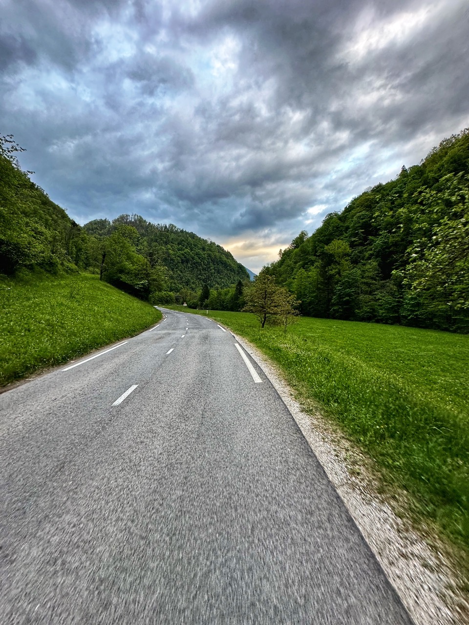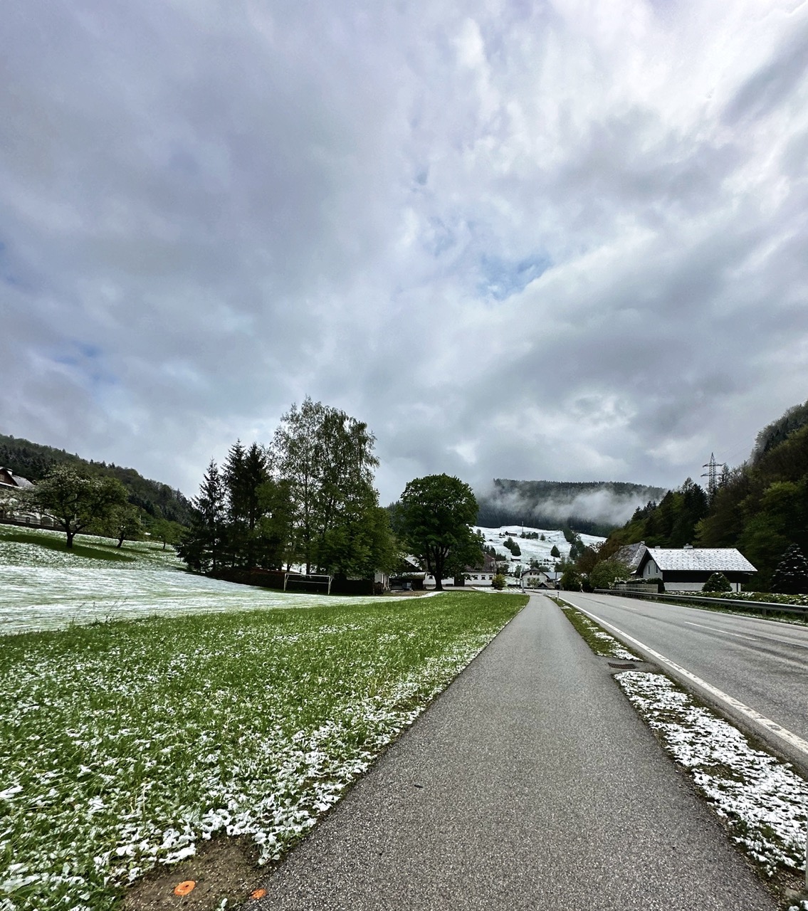 Met een kop koffie en schnecke in mijn maag vervolg ik mijn weg. De zon komt op en heel langzaam wordt het weer wat aangenamer. Ik blijf in het dal en op wat kleine pukkeltjes na is het Oostenrijks vlak. In de dalen zijn er helaas niet veel route opties. Dit betekent veel N-wegen, goed voor de progressie maar op drukke plekken zenuwslopend.