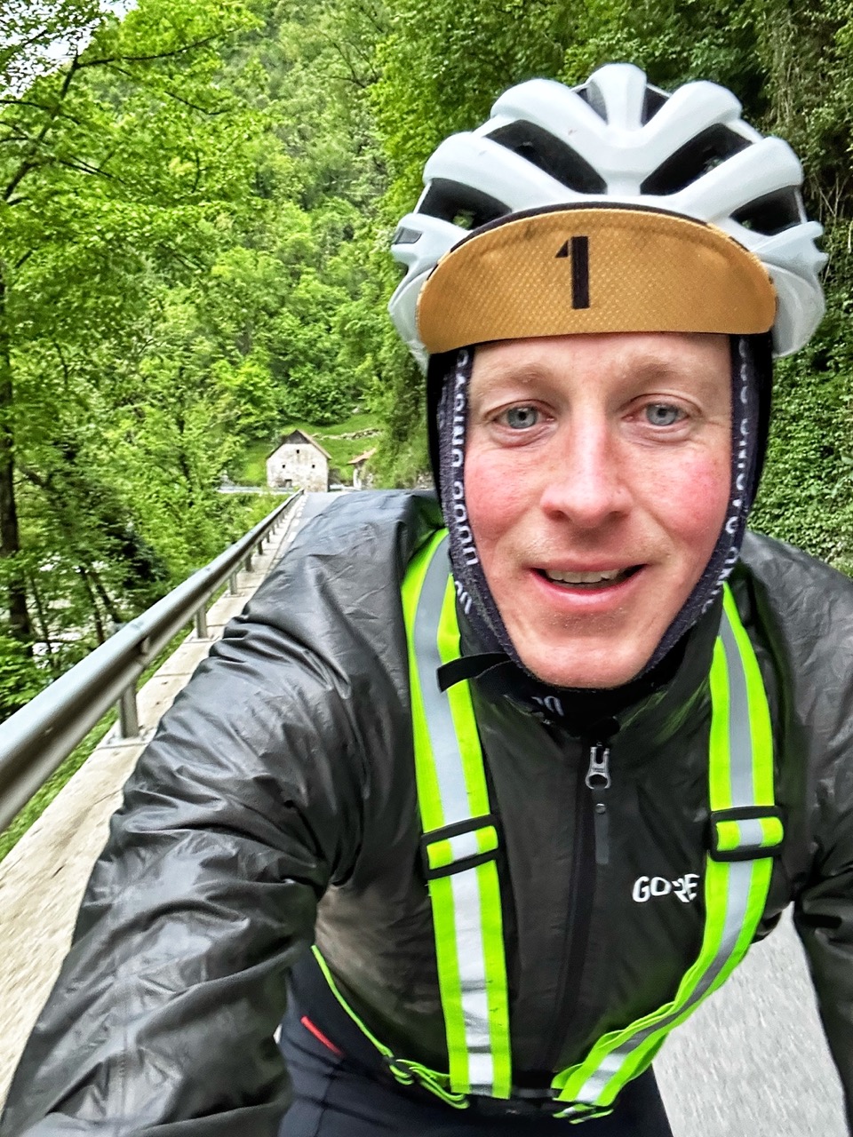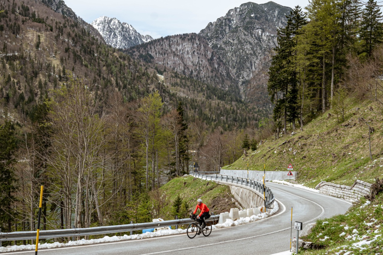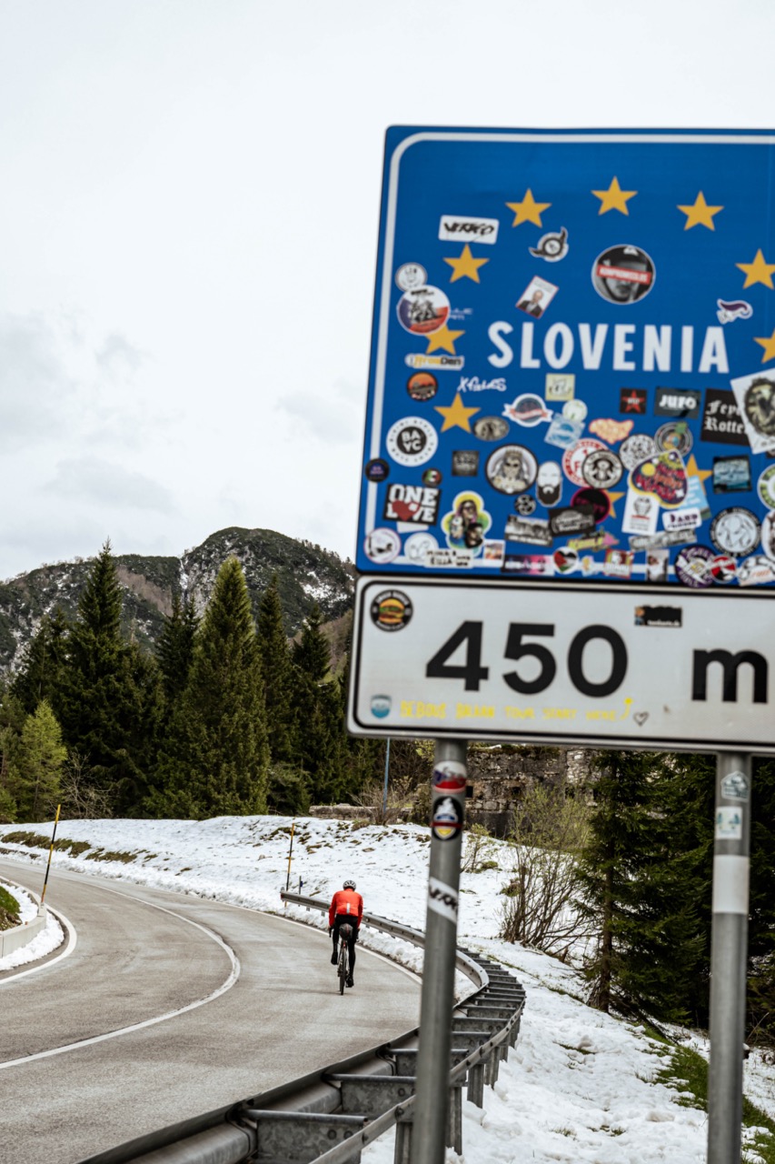 CP2 is in Slovenië op de Tolminske Ravne, wederom een doodlopende klim. Via Villach rijd ik naar de Italiaanse grens om in Travisio de Predilpas naar Slovenië te nemen. Hier ben ik al eens eerder geweest en ben blij dat deze in de route zit want ik heb hier geweldige herinneringen aan. In Italië is de zon gaan schijnen en ik geniet van het fietsen op deze pas. De afdaling is ook in de zon en ik rijd vol goede zin Slovenië binnen. Het is groen, de zon schijnt en de wegen zijn goed. Op een gegeven moment kom ik Tim tegen en nog wat andere fietsers die gisteren wel door zijn gereden. Ze rijden in tegengestelde richting dus ik vermoed dat ik deze weg op en neer zal moeten rijden en weet ook dat ze uren voor me zitten. Eerst maar naar CP2.