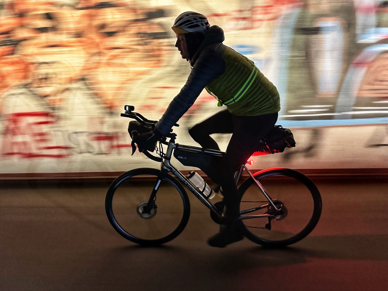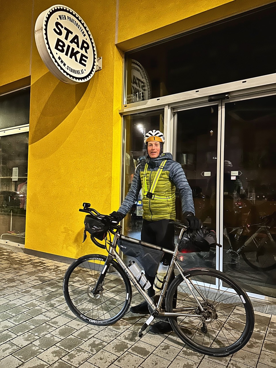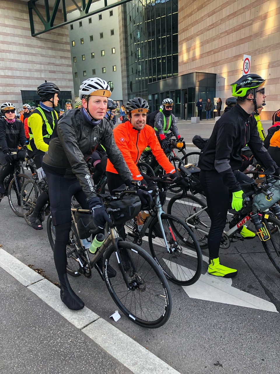 Met tegenwind naar Wenen en meer dan 1100 km in de benen betekent dat ik niet meer dan 150 watt kan geven en daarmee slechts 18-20 km/uur ga. Ruim drie uur lang. Ik prent in mijn hoofd dat ik waarschijnlijk het beste met de wind om kan gaan en dat als ik maar constant blijf trappen, 150 watt genoeg moet zijn. Als mensen harder gaan kunnen ze het waarschijnlijk toch ook niet meer dan drie uur volhouden. Iedereen moet moe zijn en ik heb de anderen niet voor niets ingehaald tussen CP3 en 4. Steady blijven dus. Met het mantra “de finish is bij de finish” in mijn hoofd blijf ik drie uur doormalen. Op de lange rechte stukken kijk ik om of ik lampjes zie, maar die daar haal ik geen informatie uit. Er zijn door de talloze windmolens honderden flikkerende lampjes. Doordat het in mijn hoofd race is, vliegt de tijd en voor ik het weet bereik ik de rand van Wenen en het nog 15 kilometer lange finish parcours. Het einde is bij de brug terug de stad in. Omdat op de zondag er een marathon is zijn er twee finish parcoursen uitgetekend. Ik heb de route “without marathon” geladen. De marathon is immers nog niet bezig. Dit blijkt een foutje in de titel van de file waardoor ik, volledig in race modus, om 3:17 een brug te ver doorrijd. Francien en Martijn, die middenin de nacht zijn opgestaan om me binnen te halen roepen nog dat ik er al ben, maar ik wil geen risico nemen. Niet heel veel later komt Paul ook binnen, die net als ik aan het racen was voor een plekje. Uiteindelijk finish ik als 11e. Bij Star Bike is verder niemand, maar we hebben elkaar om te feliciteren met het uitrijden van een door de winterse omstandigheden heel zware race.