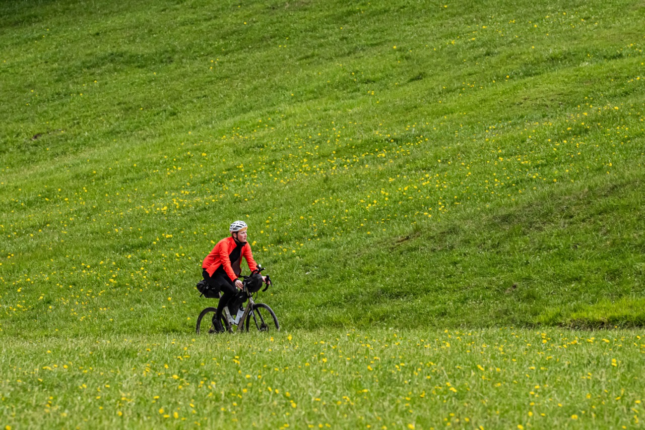 In het dal is een fietspad langs de rivier; een route die door meer renners wordt gekozen. De eerste uren zit ik afwisselend op dit fietspad en op de N1 naar St. Pölten. Op de dijk waar het fietspad loopt is een lange sliert van wielrenners te zien. Iedereen is nog fris en er wordt redelijk doorgereden. Ik besluit om me nog wat te sparen en rijd in gestaag tempo door en blijf daarmee in de sliert van fietsers hangen. Bij een wegomleiding op de dijk is er de keuze om onverhard langs de dijk te gaan, of om de omleiding te nemen. Omdat ik iemand zie vallen, besluit ik voor de omleiding te gaan, waardoor ik wat achterop raak. Het veld komt gedurende de uren sowieso wat verder uit elkaar te liggen en de lange eenzaamheid begint. Tot Waidhofen an der Ybbs blijf ik in het dal. Voor de route betekent dit een aaneensluiting van lange drukke N-wegen. Op een gegeven moment kom ik Levi tegen. We hebben een korte babbel en min of meer eenzelfde tempo en route. Hierdoor blijven we lange tijd in de buurt van elkaar. Beide vervloeken we de drukke weg, maar we weten ook dat dit de snelste weg is naar CP1.