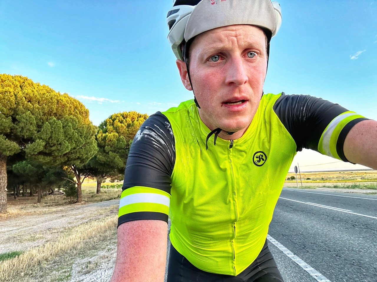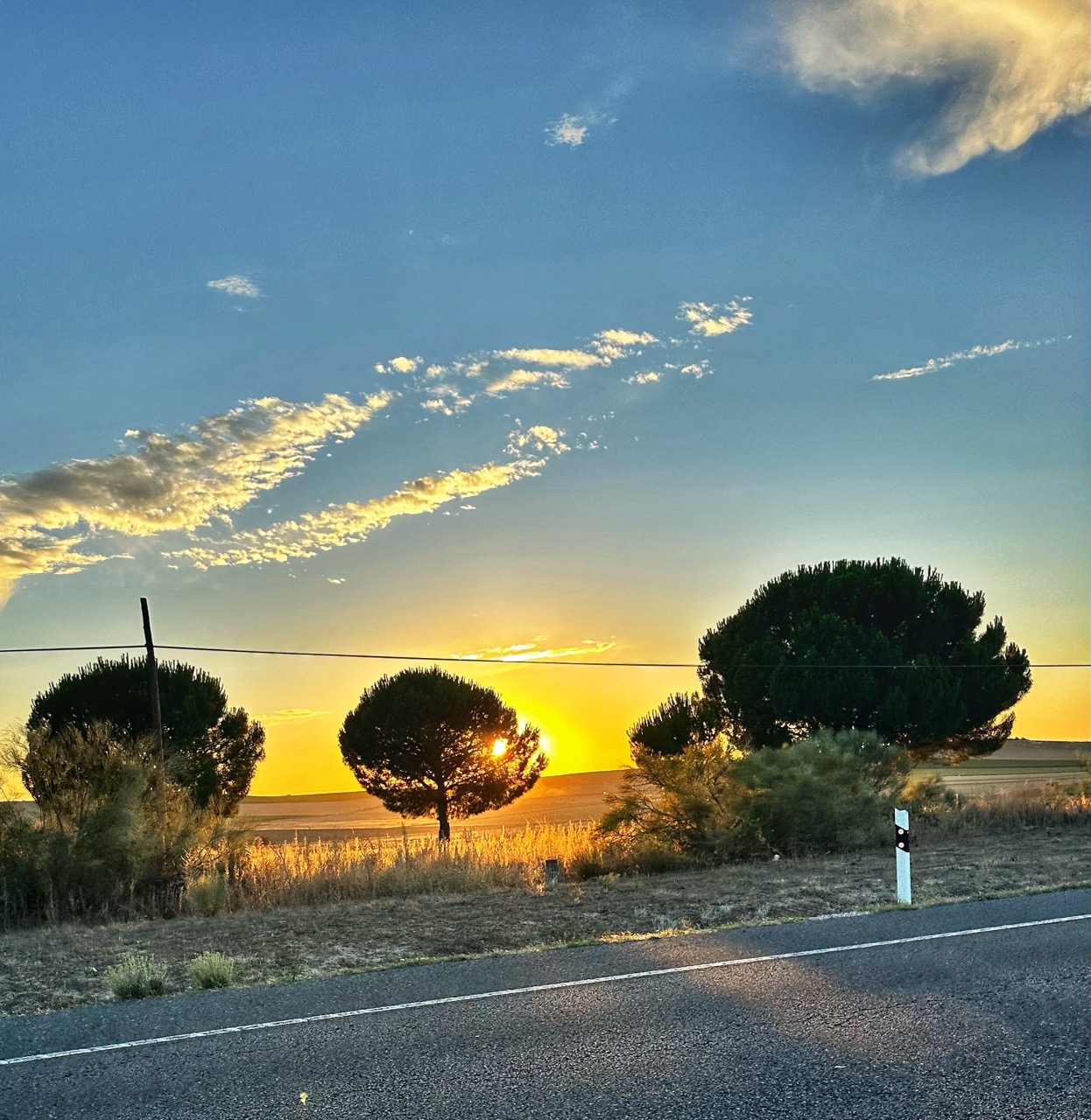 In Ávila wil ik wat eten, maar ik ben te vroeg voor de barretjes die eten serveren, en dus besluit ik door te gaan naar Valladolid. Wat, op een kort klimmetje na, een vals platte route omlaag oplevert. Alleen door het niemandsland, maar dat eten moest nog wel gebeuren, want reepjes krijg ik nog steeds niet weg in de hitte.