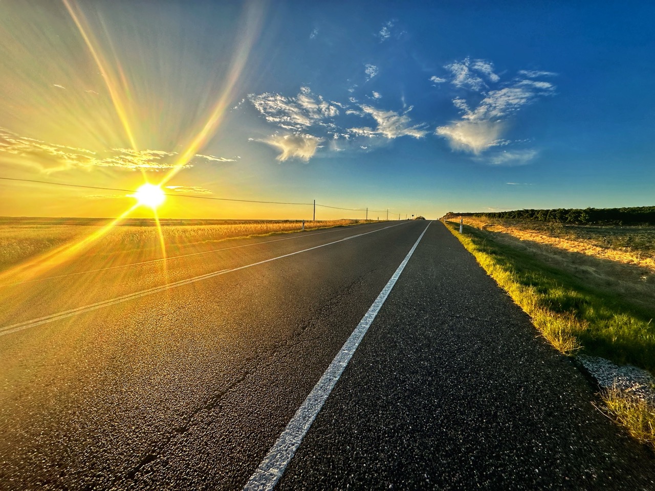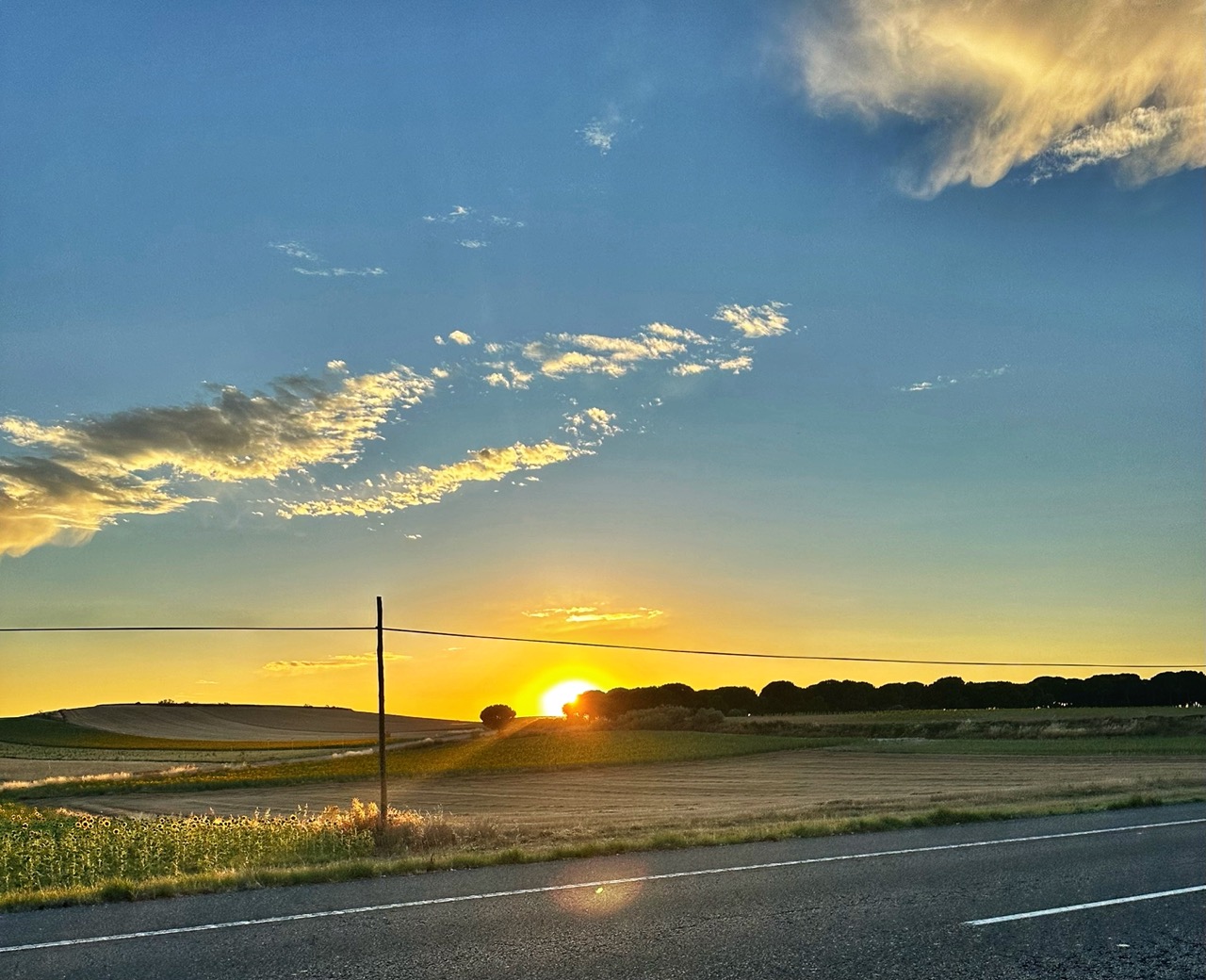 Allereerst een lange N-weg met mooie en minder mooie stukken. Zo zie ik een zonsondergang tussen de zonnebloemvelden maar ruik ik ook smerige industrie.