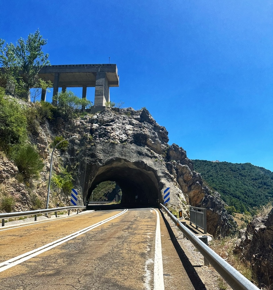 De afdaling gaat naar de zuidkant van het gebied en het is hier weer minder groen, maar de weg loopt wel door machtige rotspartijen.