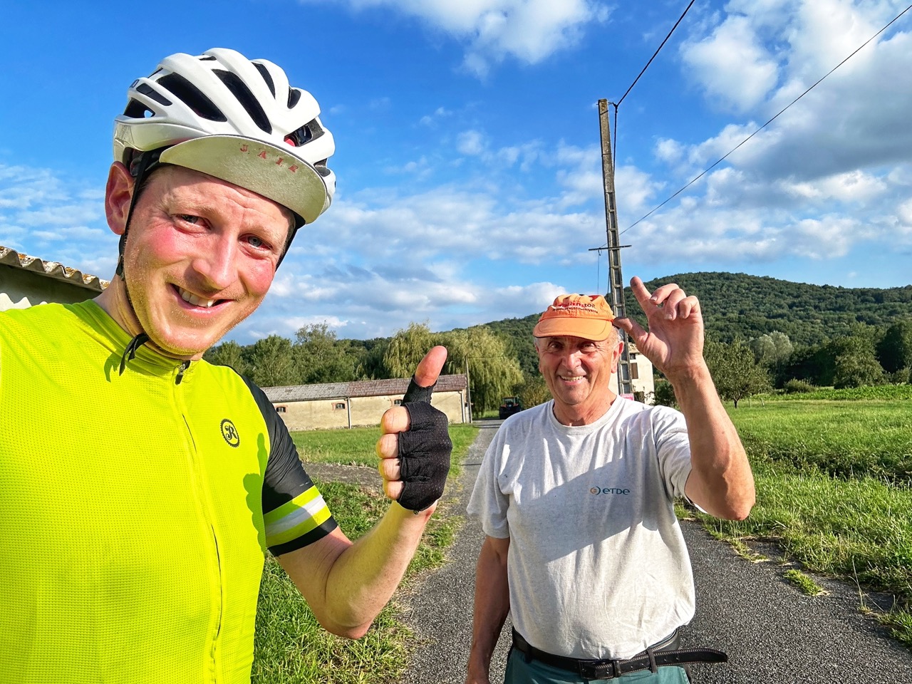 Dan rijd ik 10km voor le Bezy weer lek. Een leegloper. Ik besluit deze op te pompen en staand op de pedalen verder te gaan in de hoop dat het goed komt, wat gelukkig het geval is.