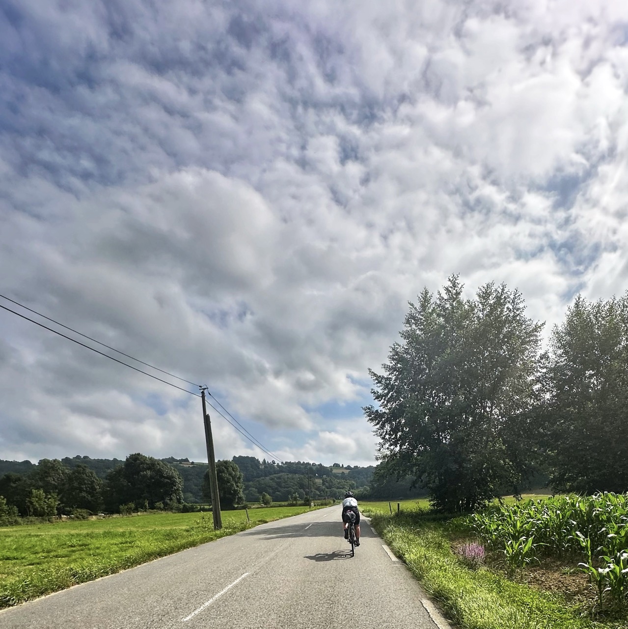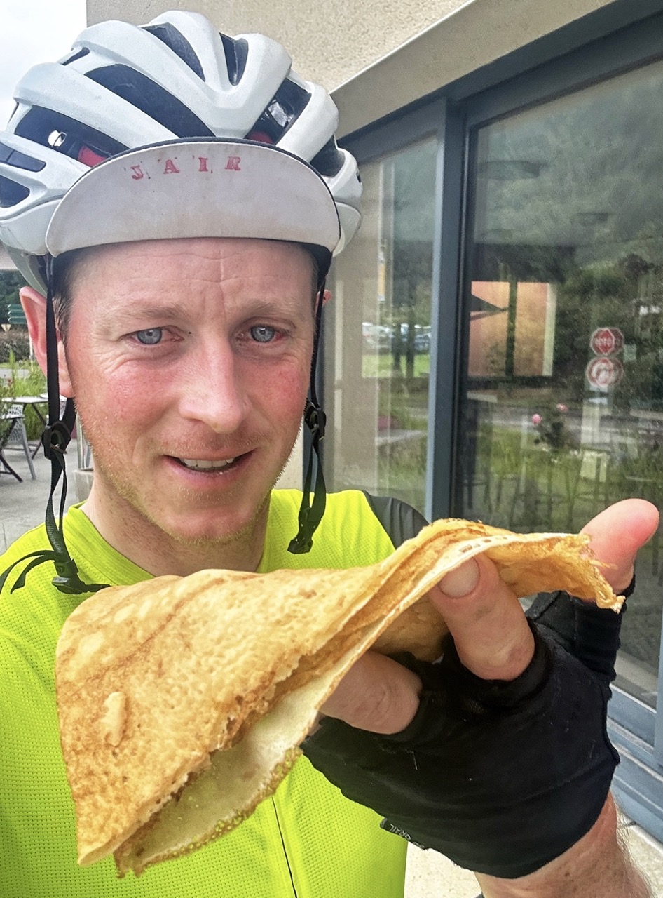 Ik fiets verder en ga richting Lourdes. Eerst nog een stuk bergaf dan heuvels. Heb mijn route zo vlak mogelijk proberen te maken en ga dus met een boog om andere Pyreneeën klimmen heen. In Lourdes sla ik bij een bakker in, eet ik een crêpe, en neem twee stokbroden tonijn mee voor onderweg.