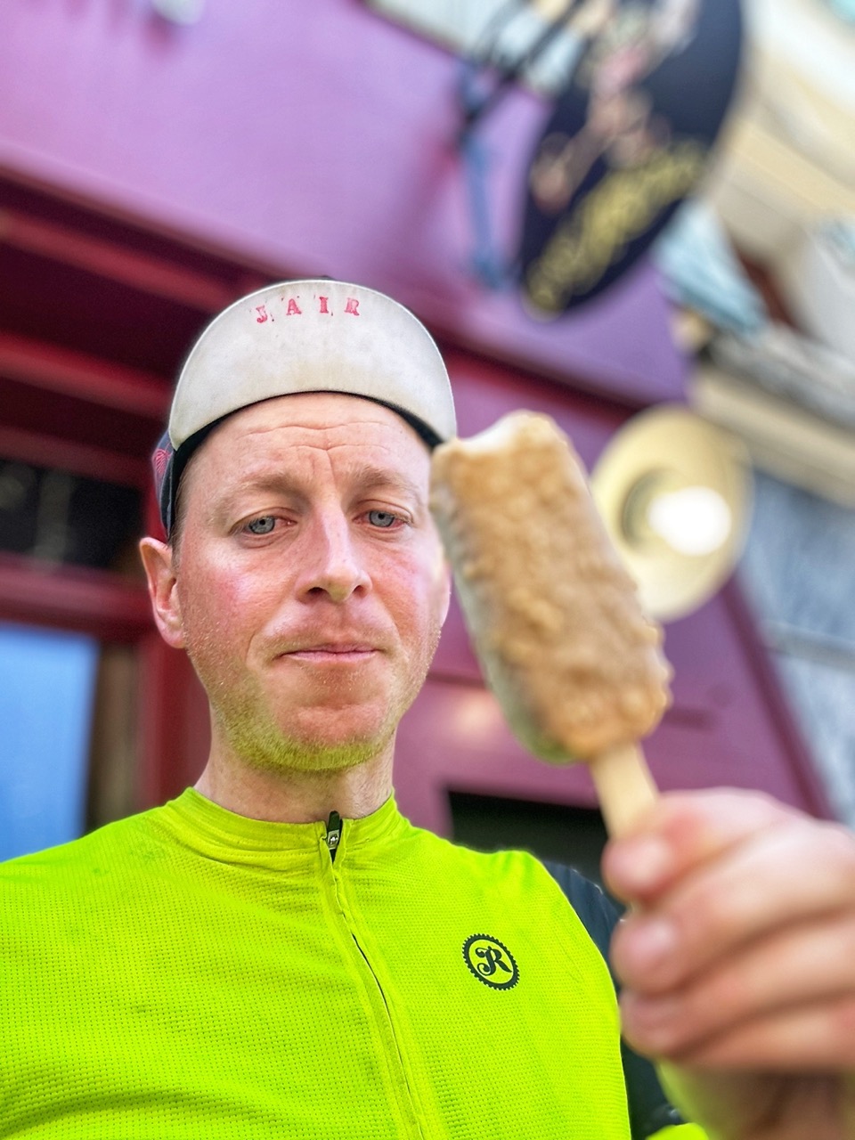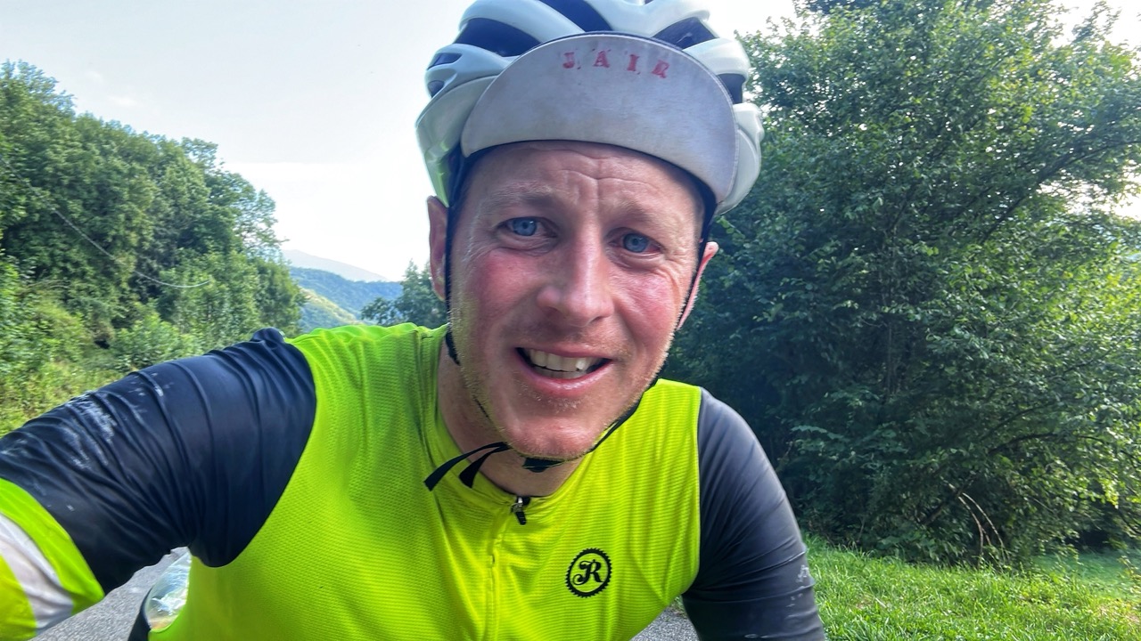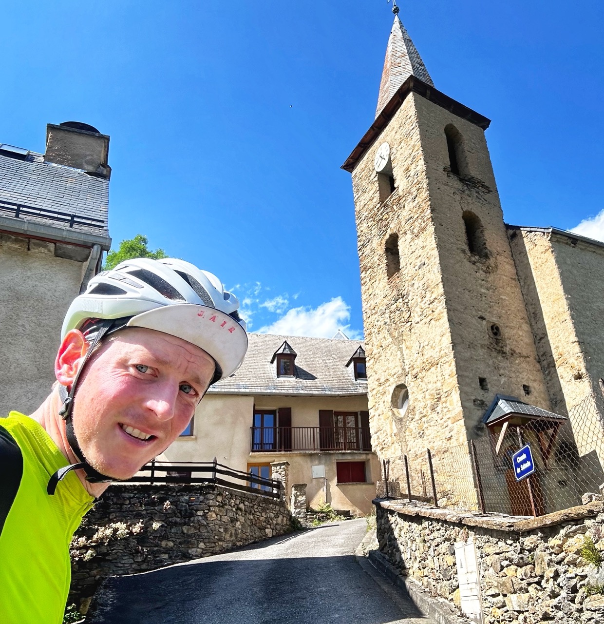 Na Lourdes kom ik Juhani weer tegen, maar hij draait rechtsaf de Aspin op, ik ga eromheen. Benieuwd wat sneller is. Mijn route gaat over een paar steile B wegen, is waarschijnlijk langer, maar heeft minder hoogtemeters. In Arreau ben ik er achter. Terwijl ik op het terras een cola en orangina aan het wegklokken ben en aan mijn tweede ijsje zit, komt Juhani hetzelfde café binnen. Wederom geen blik, hij bestelt eten en gaat achterin het café zitten. Aangezien hij sneller klimt, denk ik toch de betere route te hebben genomen.