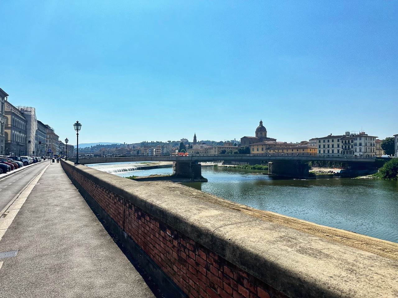 Daarna fiets ik door. Mijn route gaat dwars door Florence, maar gelukkig heb ik veel fietspaden en weinig stoplichten. Even in de stad zijn is wel lekker. Verandering van spijs. En wat voor stad! Ik zie de Ponte Vecchio en andere beroemde gebouwen. Totaal geen straf om hier doorheen te rijden.