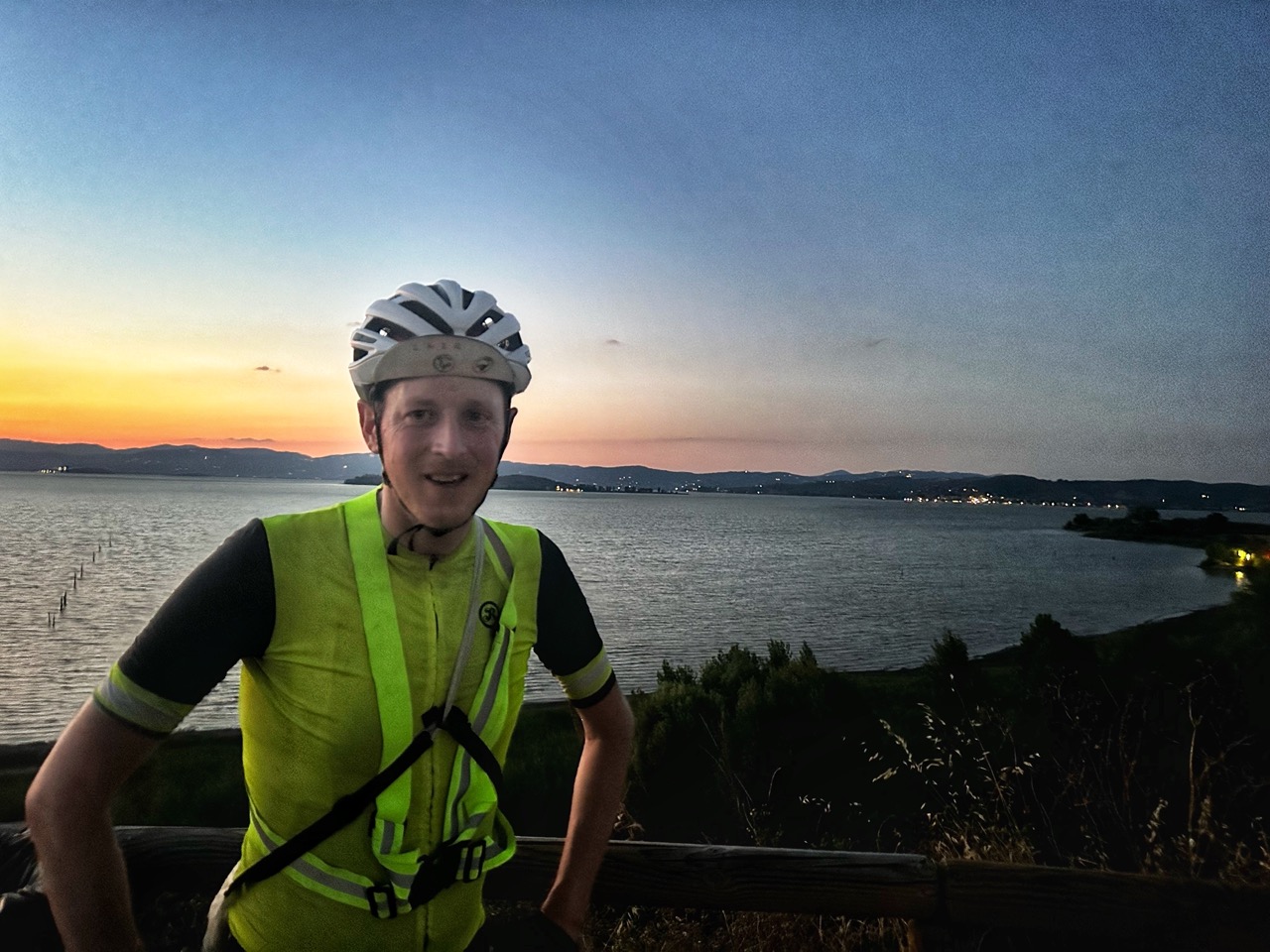 Vanaf hier rijd ik naar Lake Trasimeno. De route gaat naar de zuidkant hiervan maar de noordkant is beroemd vanwege een veldslag die Hannibal van de Romeinen won. In een notendop: de grootste nederlaag van de Romeinen op eigen grondgebied, notabene ook nog met een onderbezet leger, maar winst door tactisch vernuft. Ik hoop vooral dat mijn tactiek van afgelopen nacht standhoud en ik voorsprong heb op Juhani en Eivind, waarvan ik op dit punt nog niet weet dat hij uit zou vallen.