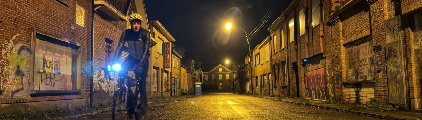 Langzaam maar zeker kom ik dichter bij de Nederlandse grens en wordt het ook donker. Nou heb ik het zelfde stuk tijdens “Randje België” al eens gefietst en weet ik hoe de weilanden er hier bijliggen. Zeker op deze grauwe dag mis ik niet veel. Zo kan ik me concentreren op de Macadam platen die onder het slijk liggen en proberen een stootlek te voorkomen. Een smerige fiets plakken in de regen is momenteel mijn grootste angst dus ik rijd voorzichtig over de smerige wegen.