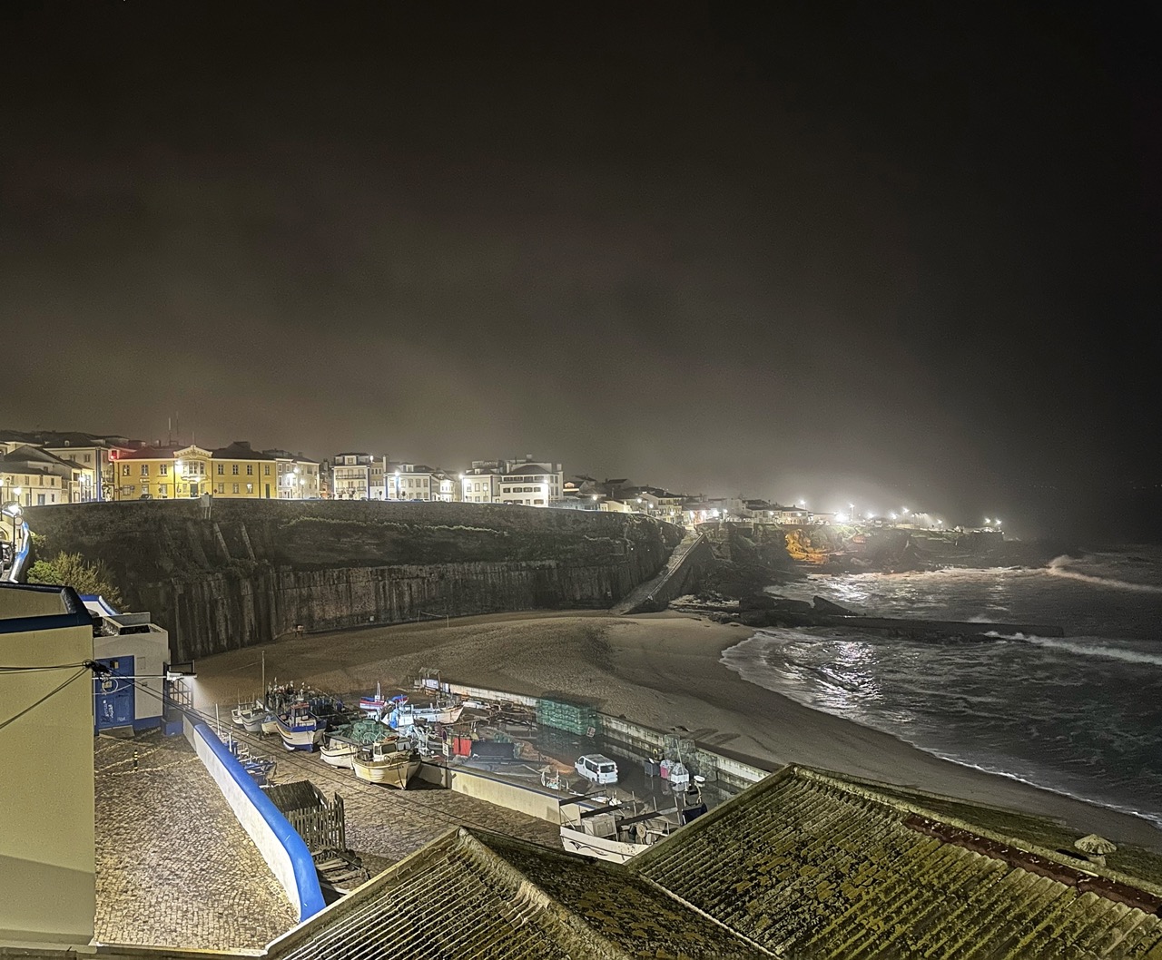 Ericeira is op dit tijdstip alles behalve uitgestorven. Rondom een club aan de haven hangen jongeren die nog van het uitgaansleven aan het genieten zijn. Ze kijken me raar aan maar zijn toch vooral met zichzelf bezig. De straatjes verder van de club zijn wel leeg en het kleine vissershaventje ligt er rustig bij. Na de witte, soms gladde, kinderkopjes van het dorp draai ik de kustweg op in noordelijke richting met aan mijn rechterkant de Atlantische Oceaan.