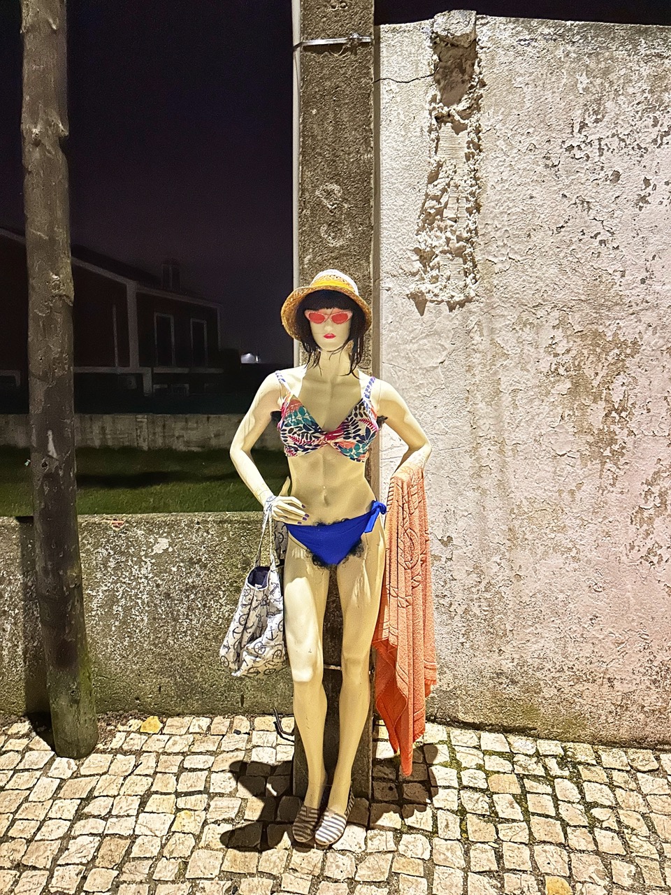 Het merendeel van de route gaat gelukkig over de grote weg waar ik als passant door de slapende dorpen rijd. Ik blijf het mooi vinden om ‘s nachts te fietsen door de eenzaamheid. In Cambelas krijg ik echter gezelschap. Dit dorp staat namelijk vol met verklede poppen. Van de eerste twee schrik ik een beetje want het lijkt of er opeens iemand over wil steken. Toch denk ik niet dat ze er staan om het verkeer af te remmen, maar vermoed ik dat ze er staan voor het aankomende carnaval. Het blijft wat spooky om de 75 meter een verklede pop te zien in een donker en leeg dorp.