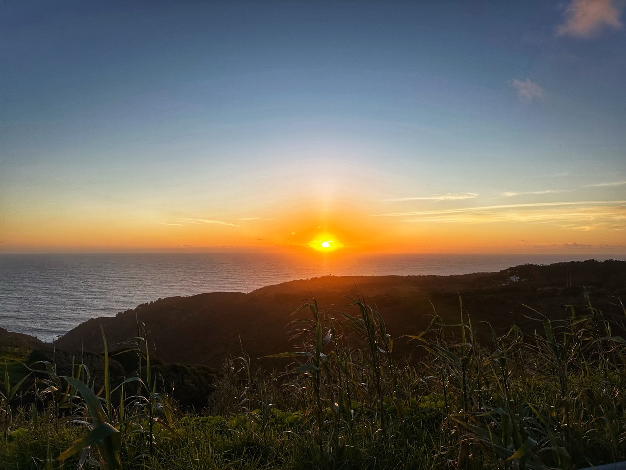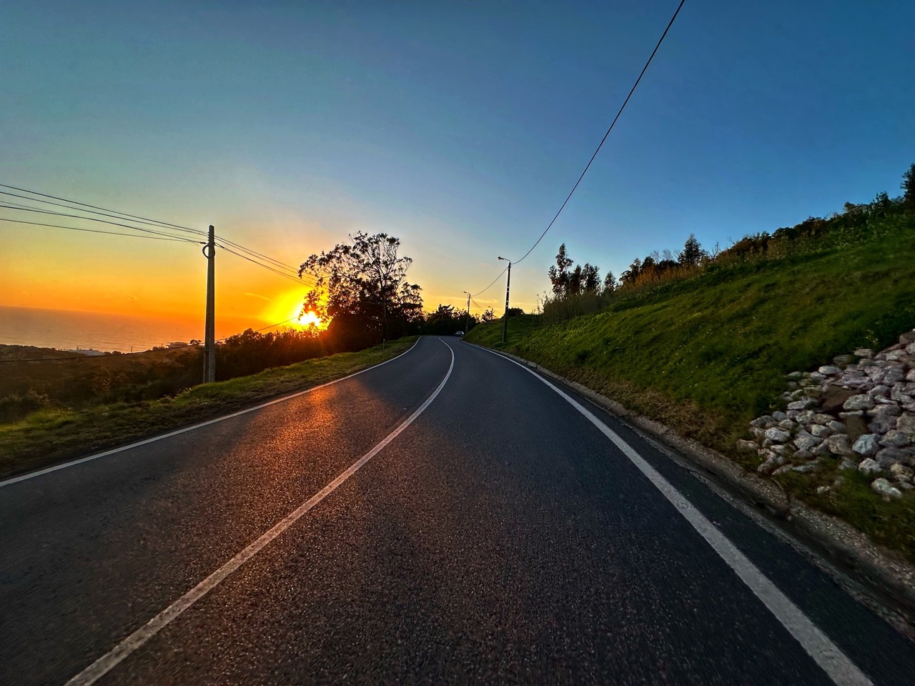 Ondanks de drukte schiet het wel op en draai ik weer naar het noorden voor de zon onder is. Wanneer het begint te schemeren draai ik de hoogste beklimming van de dag op: de weg naar Cabo da Roca, het westelijkste punt van het vasteland van Europa. Hier was ik een paar dagen geleden al en weet dat deze weg prachtige vergezichten over zee heeft, met op dit tijdstip dus de zonsondergang op zee.