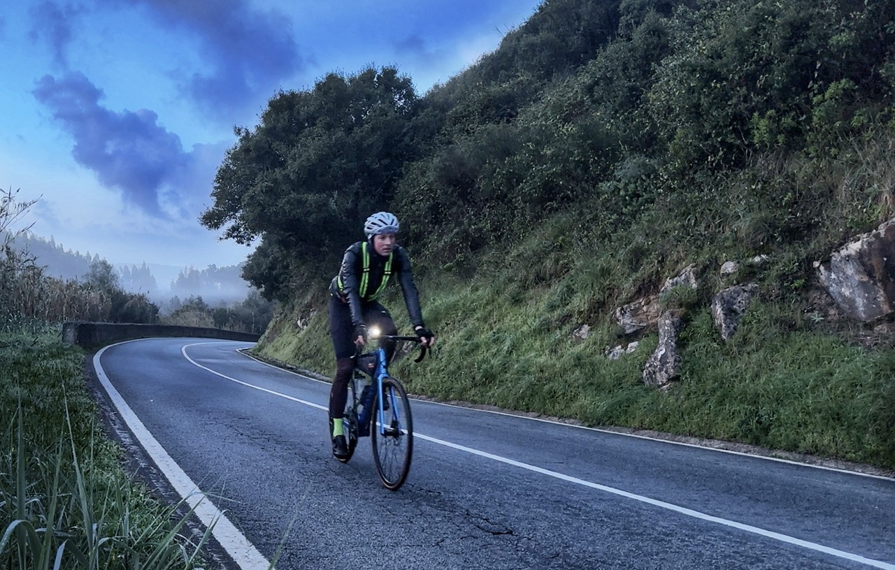 De eerste pakweg 50 kilometer zijn langs de kust. De grote kustweg is een goede N-weg die ook nog eens veelal verlicht is. Dit rijdt goed door. Maar een randje zou geen randje zijn als ik hier niet her en der vanaf moet om de rand op te blijven zoeken. De kust heeft stranden maar bestaat vooral uit hoge kliffen. De kleinere wegen zijn een stuk slechter en daar waar ik echt tot bij de kliffen kom is het steil. Dit gaat langzaam; vooral de steile, donkere afdalingen met slecht wegdek neem ik erg voorzichtig. Ook blijken enkele wegen onverhard te zijn. Nu ben ik daar niet per se vies van, maar omdat er stukken zijn van ruim boven de 10% besluit ik eieren voor mijn geld te kiezen met mijn 28mm slicks.