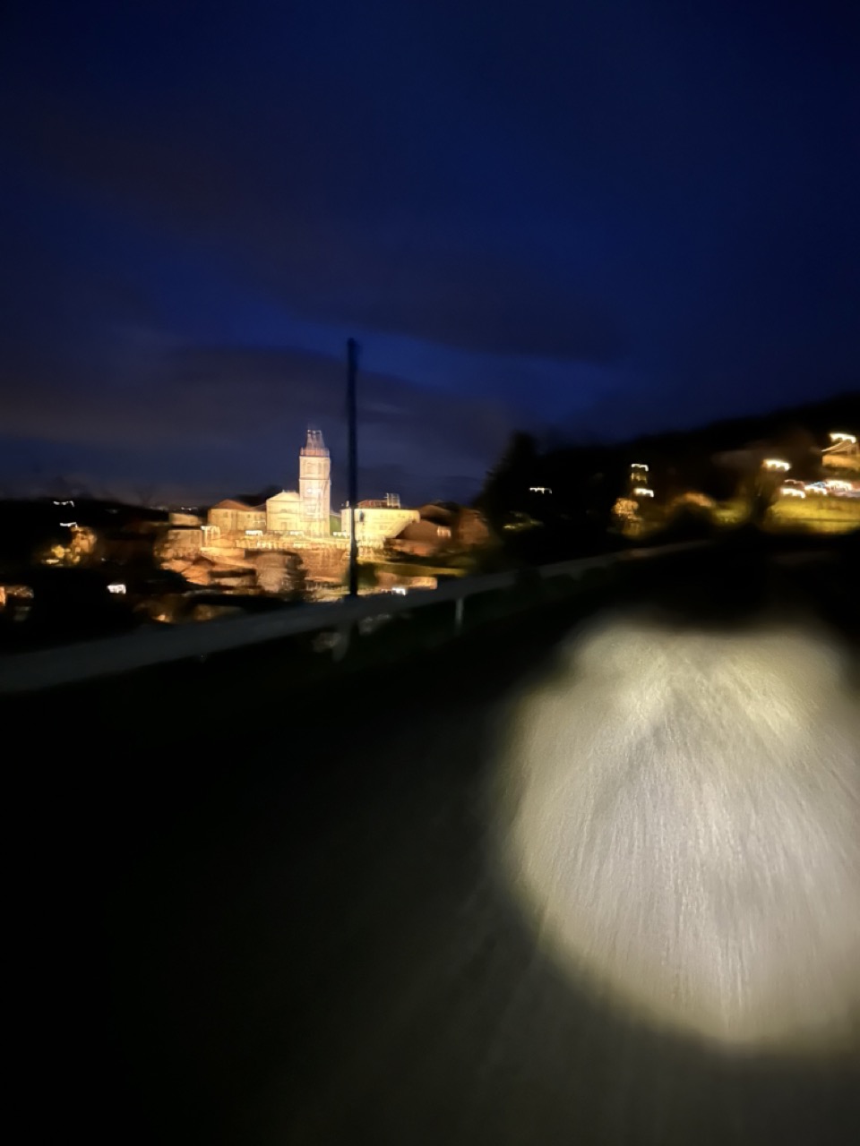 Het heuvellandschap is prachtig, er zijn niet veel dorpen of stadjes, maar als er wat is hebben ze vaak een kasteel of kerkje. Altijd wel wat te zien dus, al zal dat van tijdelijke aard zijn want het wordt langzaam donker. Tijd om extra kleding aan te doen en daarna stug door te kachelen naar CP2.