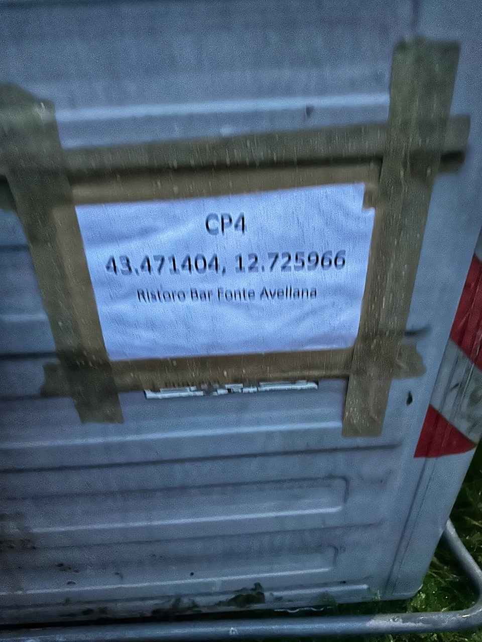 Nog een klim over en ik ben bij CP4. De ondertitel van het blaadje met coördinaten was “Ristorante Bar Fonte Avellana”. Ik verheug me dus op het maken van een route met wat te eten en drinken maar helaas zie ik geen bar. Wel kom ik Samuel die ik nog van de Mittelgebirge Classic ken. Er is hier geen bereik dus ik check welke richting hij op rijdt en besluit wat af te dalen en daar de route naar CP5 te maken.