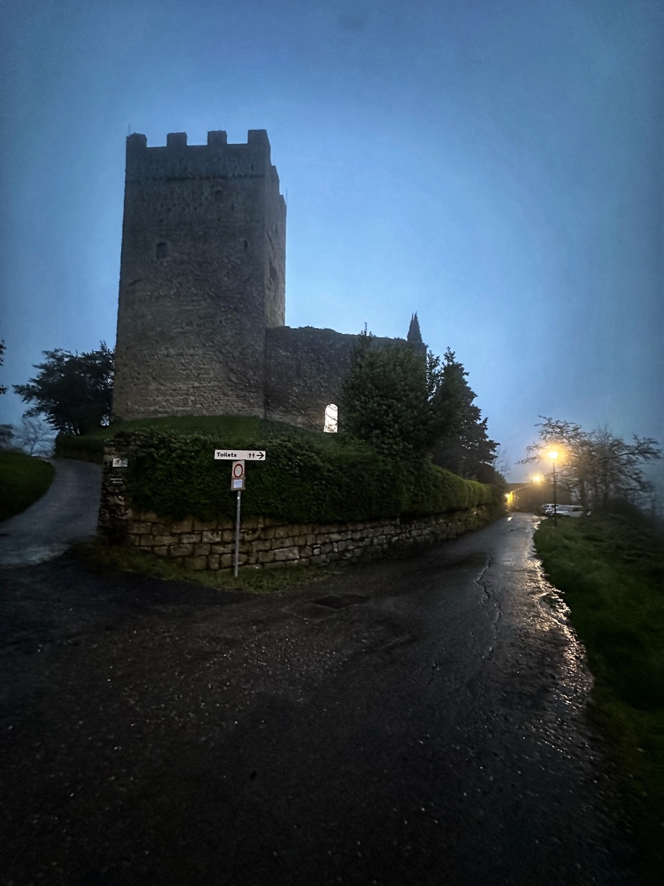 De klim naar het dorpje Radicofani is lang, maar het wordt pas echt pittig in de laatste meters naar het kasteel: steil en glad. Bovenop is een vrouw aanwezig die met een Engels accent vraagt “are you one of the team?”, en toevoegt “The coordinates are on the gate”. Ik hoef het alleen maar te beamen en aan mijn nieuwe route te werken.