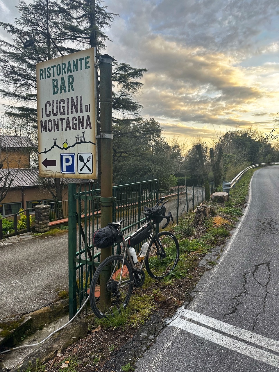 CP3 is in Porciano, nooit van gehoord, maar ik ben blij dat het in zuidelijke richting is, in de hoop op beter weer. Vooralsnog is het hier ook droog, dus wanneer mijn chocolademelk op is en de route klaar, spring ik meteen op mijn fiets. Elke droge meter is er immers één.