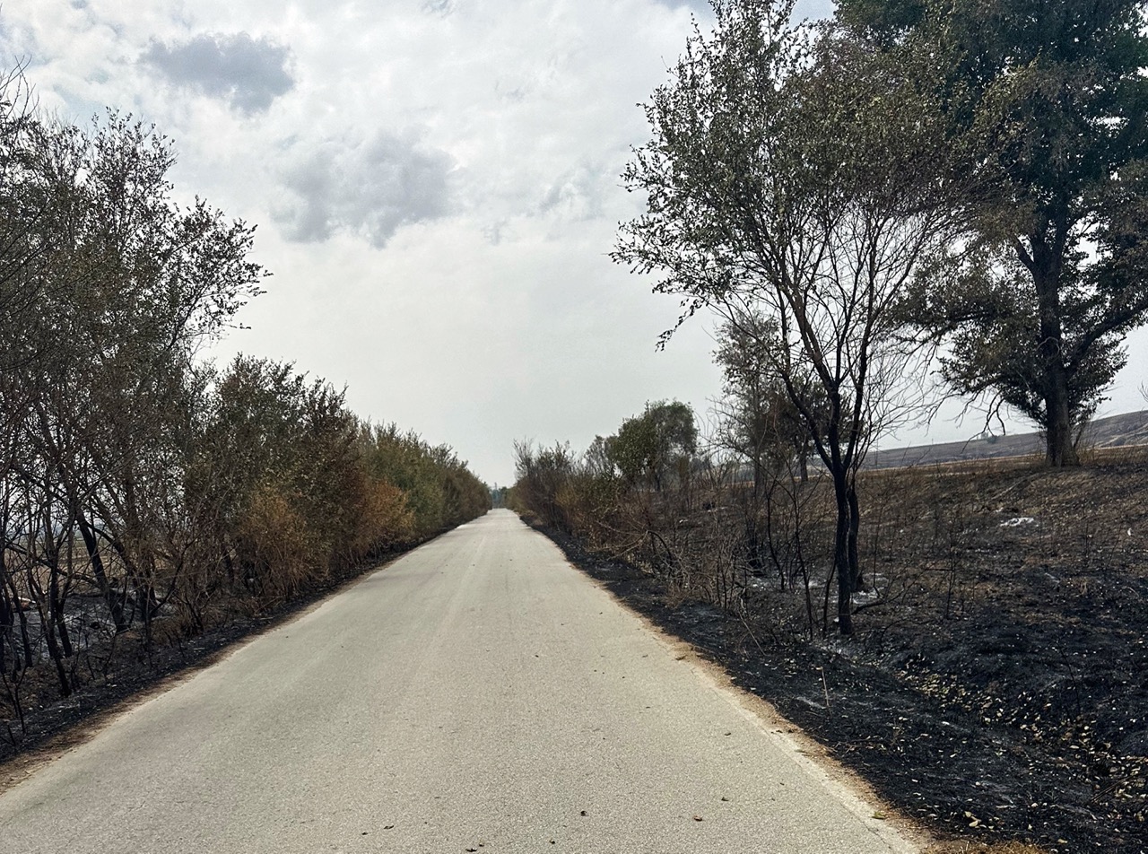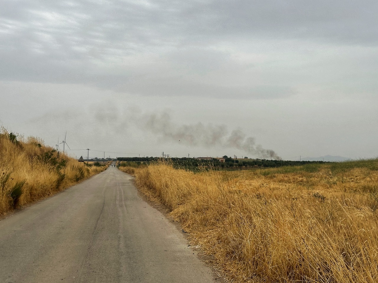 In de trein naar Giovinazzo zag ik al enkele bosbranden en ik was hier ook voor gewaarschuwd op dit stuk route. En wel ja, ik zie rook in de verte waar ik heen rijd. Verschrikkelijk om te zien, maar gelukkig voor mij is deze brand ver genoeg van mijn route vandaan. Het enige is dat op sommige stukken weg smerig bruin zwart bluswater druipt. Het is erg om te zien, maar de manier waarop Italianen met hun afval om gaan is ook vragen om problemen. Langs de kant van de weg ligt in dit land namelijk zoveel afval dat bermbranden niet te voorkomen zijn.